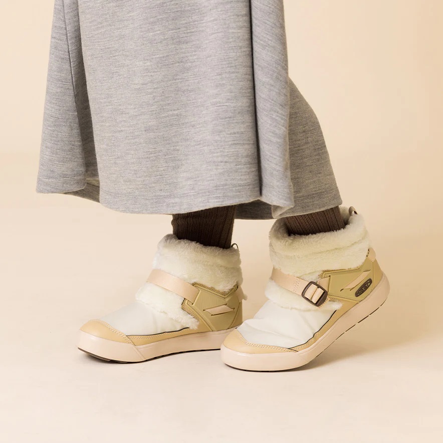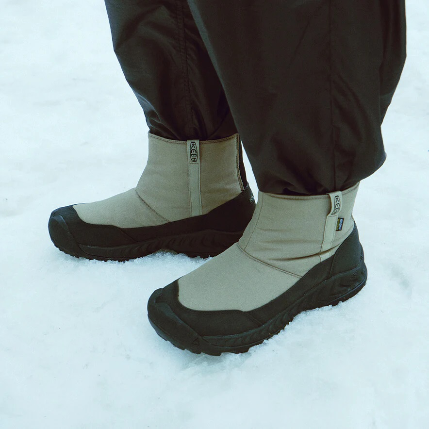 Keen Freeze 橡膠大底,透過抑制橡膠在寒冷環境下變硬、變滑的特性,使橡膠變得更加柔軟並粘附在路面上,從而增加接觸面積並保持抓地力。採用 Keen Warm 隔熱材質,由再生 PET 製成,即使在寒冷的冬季也能保持溫暖,採用天然原料進行抗菌、除臭處理。