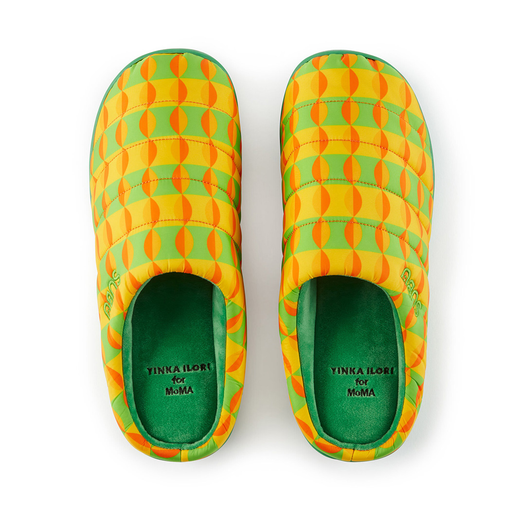 特別介紹圖片中間設計師聯名款,Yinka Ilori 是一位藝術家,擅長融合英國和奈及利亞傳統,在當代設計中創造新故事。他以大膽使用受西非紡織品啟發的明亮色彩而聞名,這款 SUBU 也繼承了他的標誌性風格。此圖案是向西非原產的”Obi”可樂果樹的果實致敬,Obi 是西非的文化象徵和神聖祭品。