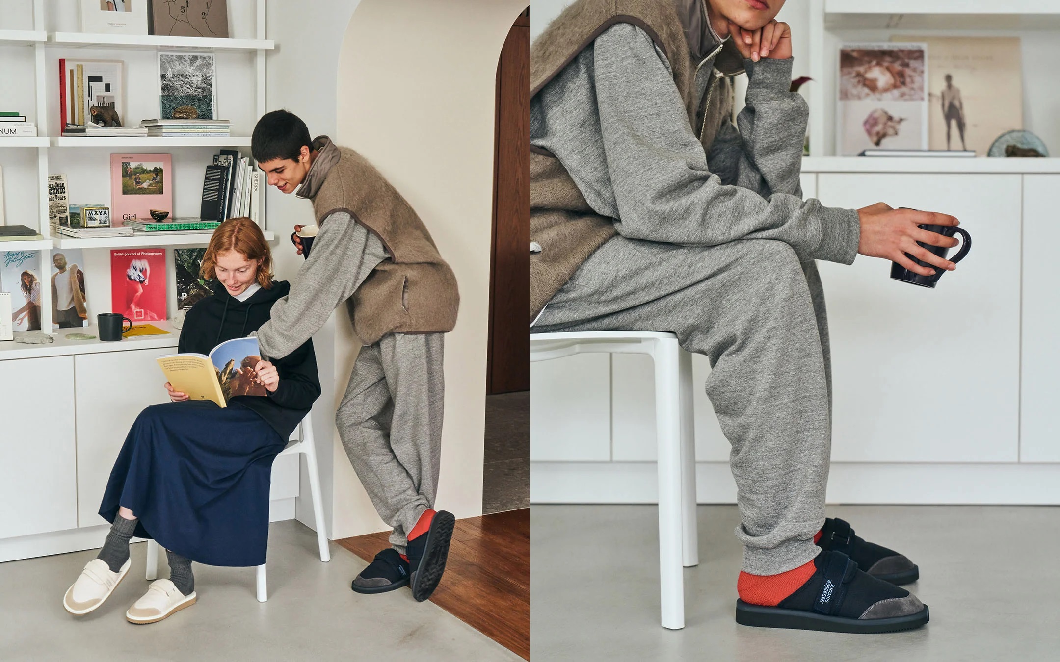 這次兩方聯名,以 Suicoke 經典款式 Zavo 作為外型設計,麂皮搭配棉質的拼布,給人一種輕鬆溫暖的感覺,輕鬆的舒適感使其非常適合當作居家鞋,或是當作帳篷內的室內脫,甚至外出散步也沒問題。鞋面採用棉帆布和麂皮結合,鞋帶採用棉質人字紋帶製成,帶有 Nanamica × Suicoke 的聯名字樣。鞋底配備了 Suicoke 原創鞋墊,提供輕盈、靈活、吸震和耐磨的特性,還附加了緩震和抗菌功能。