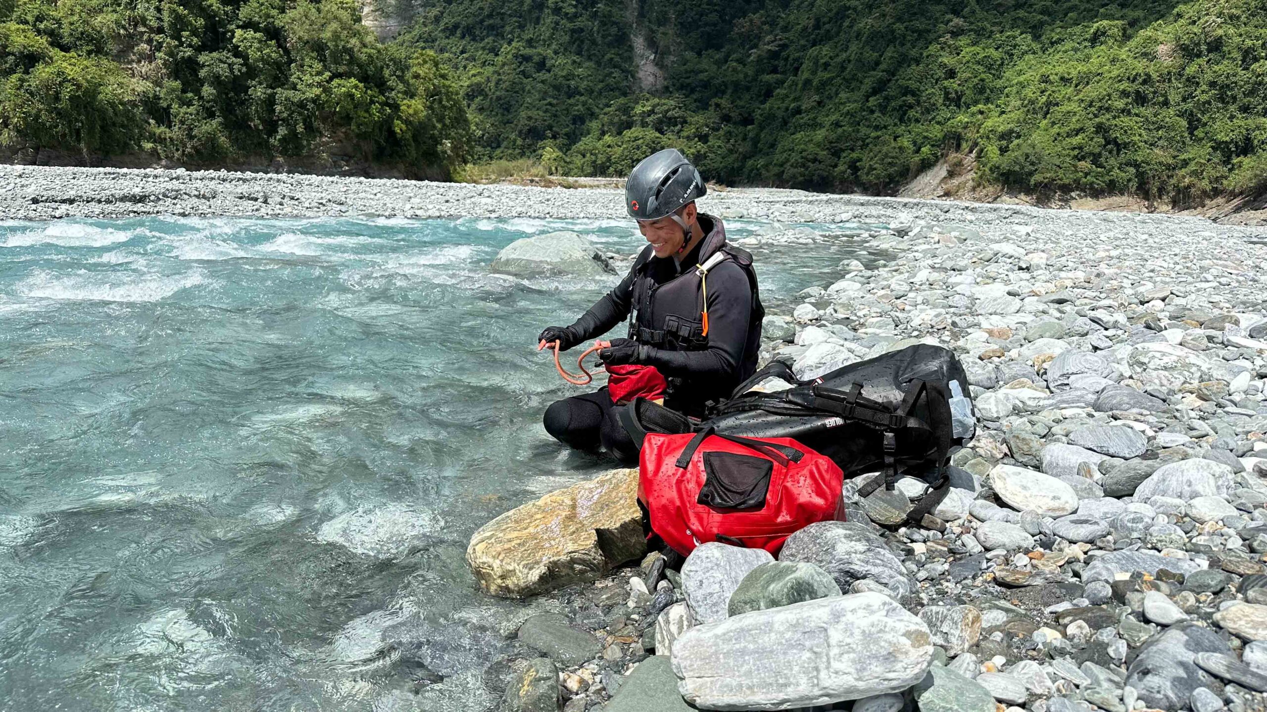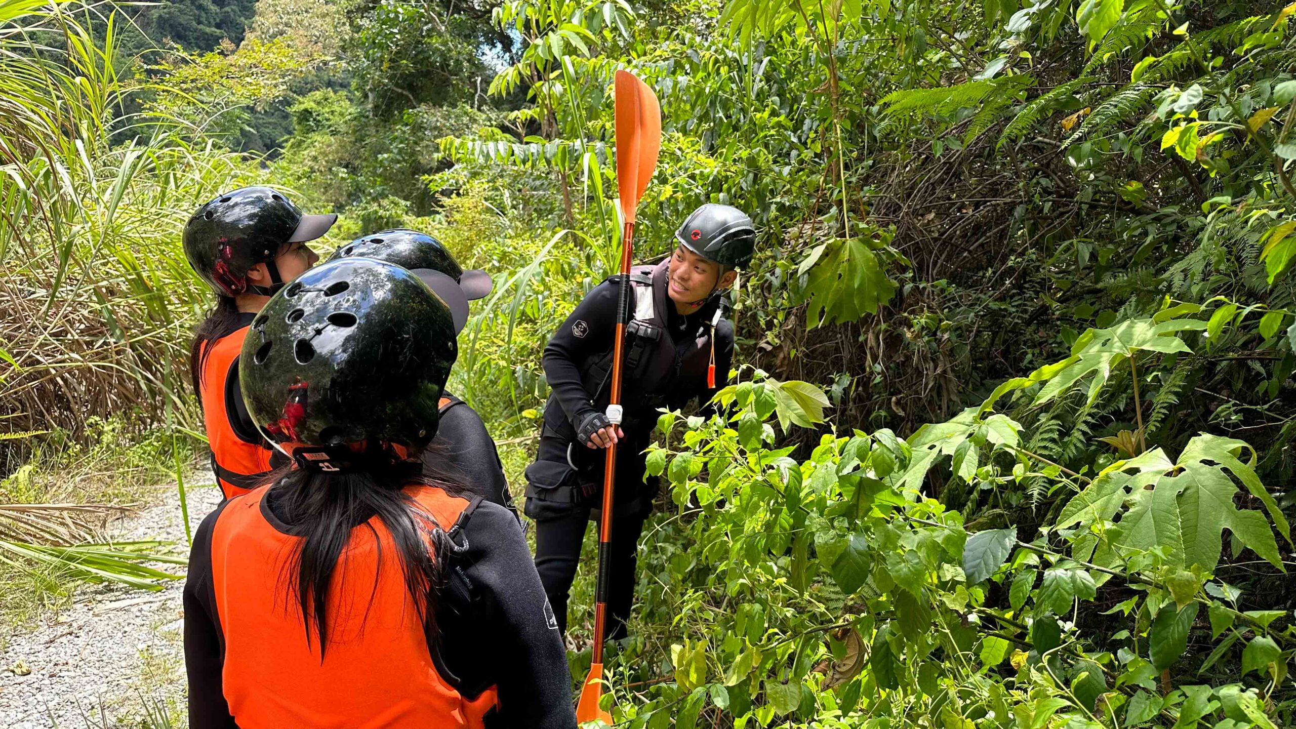 最後我們也請經驗豐富的阿賢教練與我們分享,從事水域活動的裝備選擇,他認為溯溪活動首重頭盔,但目前市面上還未推出一款真正專為溯溪而生的頭盔,大致可分為岩盔、水盔和激流盔三種: