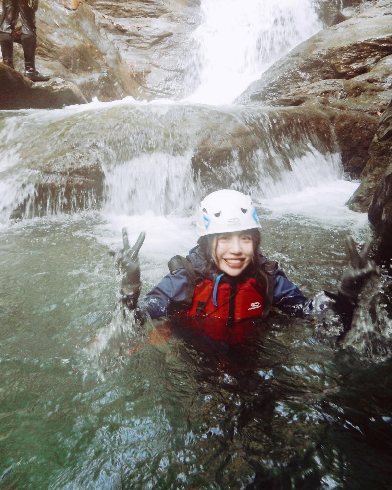 除了爬山,劉蔚藍也開始接觸溪降,照片上的她,笑得很開心,感覺很享受,但她不好意思地說,其實自己非常怕高:「我從小就很怕高,但我覺得怕沒有用,還是得想辦法克服。所以我的山友們邀約我去溪降時,我也是很快就答應了。本來以為自己可以做得到,但實際站在懸崖邊,往瀑布下面看時,恐懼感還是從腳底迅速竄上腦門,讓我幾乎動彈不得。在朋友們的鼓勵下,加上我不斷告訴自己,你可以的,我才緊抓著繩索往下降。」