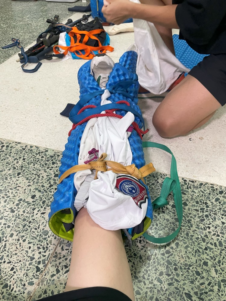 另一方面,劉蔚藍還報名了進階野外急救訓練課程,希望增進自己在山裡面遇到急難事件時的應變能力。之所以會去報名這個課程,她說要從某一次登山經驗說起。「那一次我跟山友們要去南湖大山西稜找飛機殘骸,這段路線會經過一些危險地形,還會需要一些攀岩技巧。如果沒有同伴幫忙指點,我根本不知道怎麼通過。而且因為地形破碎,同伴還因此受傷,我只能站在一旁,什麼忙都幫不上。」