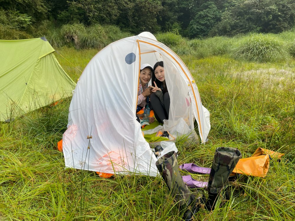 「有一次跟叔叔阿姨去挑戰巴棲松縱走 (巴博庫魯、棲蘭山、復興尖山),這是一條很冷門的路線,加上那時剛解封,有好一段時間沒有人走,植被長得很茂密,把路跡都掩蓋住了,所以我們花了很多力氣來回找路。當時我對水分攝取還沒有太多概念,很快就把水喝光。我們一行人決定在小情池迫降,找水喝。沒想到,小情池竟然沒水!我們於是又再走去大情池,也沒水!等於我們必須得再翻越山頭走到棲蘭池。當時我真的很想哭,體力也差不多耗盡,我上坡是用跪的方式往上爬,下坡就讓自己滑下去。」
