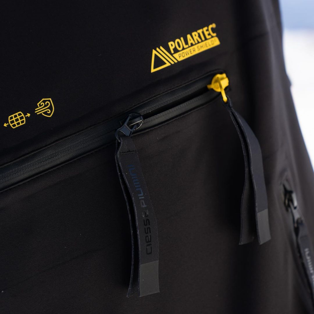 採用Polartec® Power Shield™面料製成,是新一代專用戶外衣物-Soft Shell,這種衣物的概念已經超越了保暖 Fleece 加防水/透氣外層的傳統雙層系統,都經過持久撥水(DWR)處理,不沾雨雪。由單一層來抵抗幾乎所有最惡劣的天氣環境,所有型號皆擁有萊卡或力學拉伸功能,使活動自如,適用於滑雪、冬季攀登以及野外健行等運動。