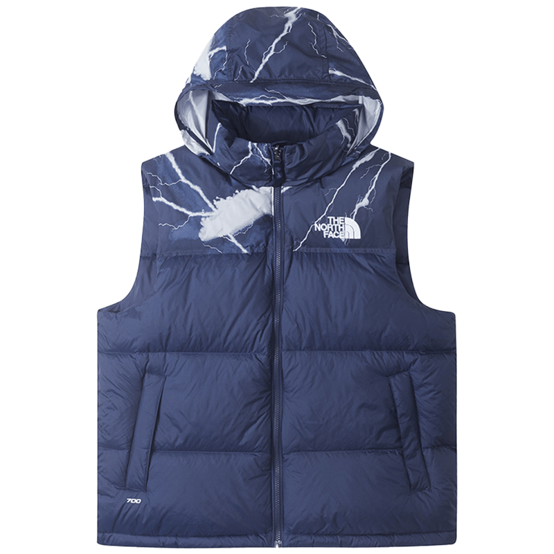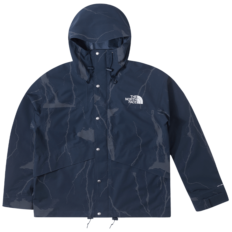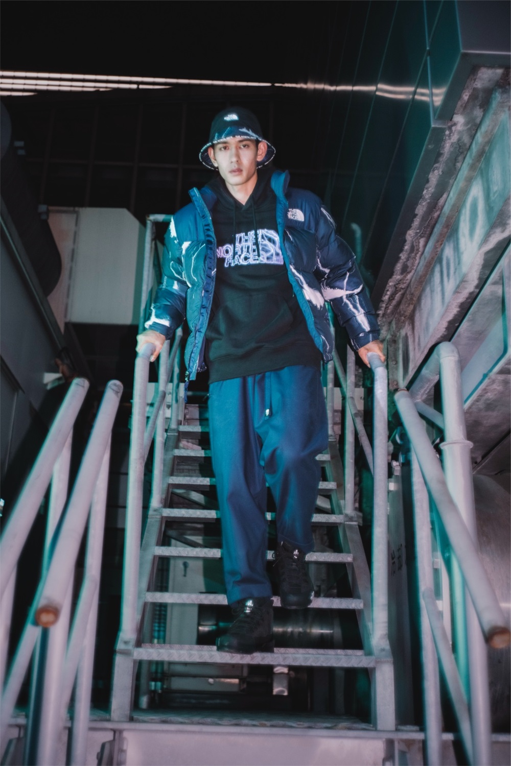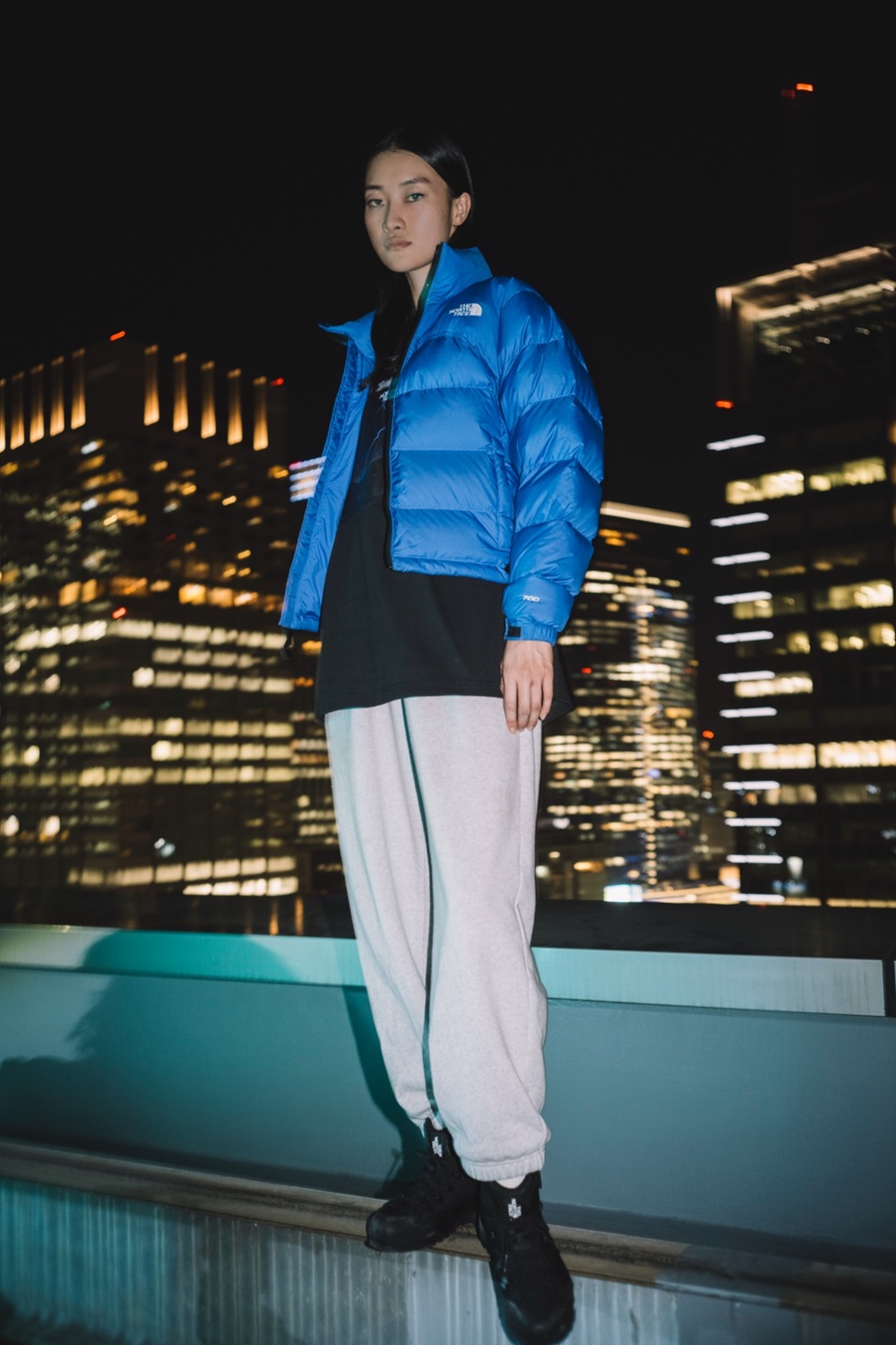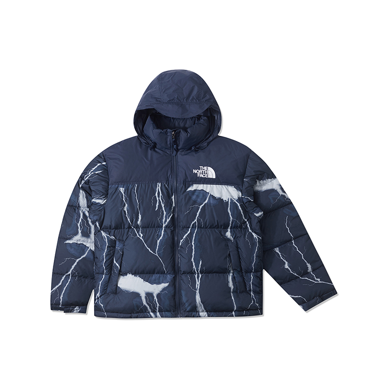 機能外套上的絲網印刷閃電源自 The North Face 1986年品牌書封面,男士羽絨服延續1996 NUPTSE 羽絨服經典版型,採用寬鬆剪裁以及原創防撕裂布料,增強服裝耐用度。外套經過 DWR 防潑水處理並以 RDS 認證高品質700高蓬鬆度鵝絨填充,加上可收納風帽協助城市探索者在自由穿脫的過程也能隨時保持溫暖。