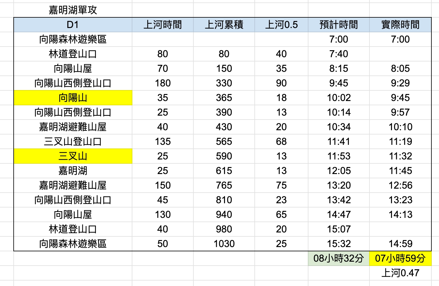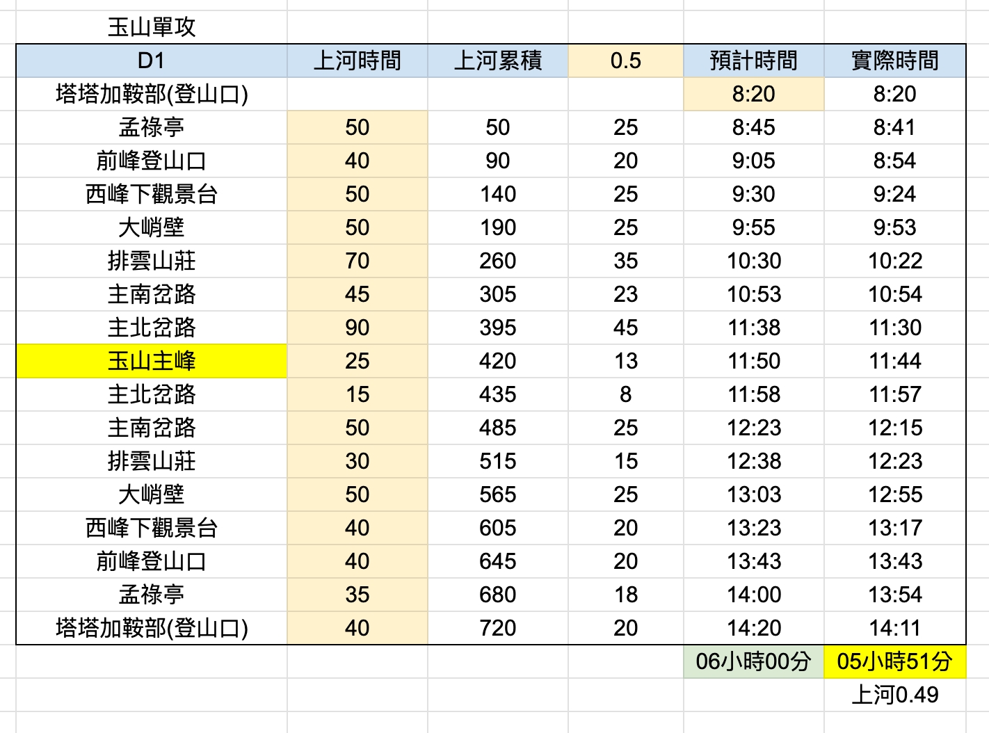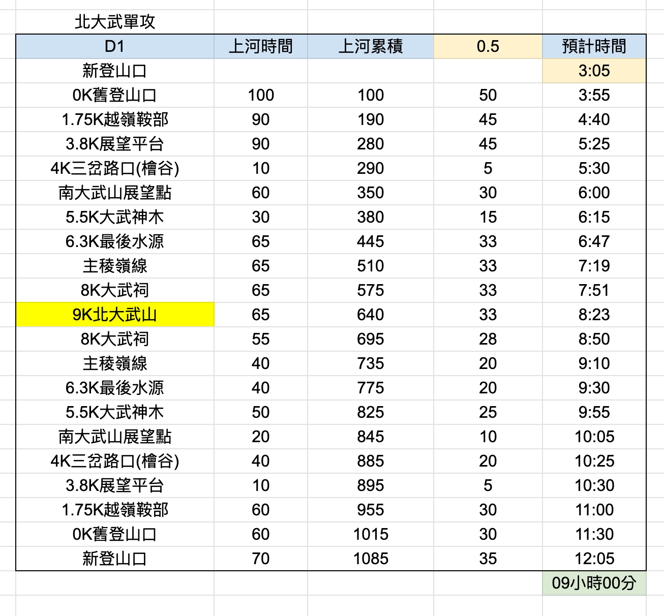 「以路線規劃還有行程來說,我是參考上河時間。以我自身體能來說,大約是上河時間的 0.5,用這個方式去預估我抵達每一個休息點的時間。我會精準抓到分鐘數,前兩趟成功的一日百岳行程,都與我預估的時間相差無幾。」