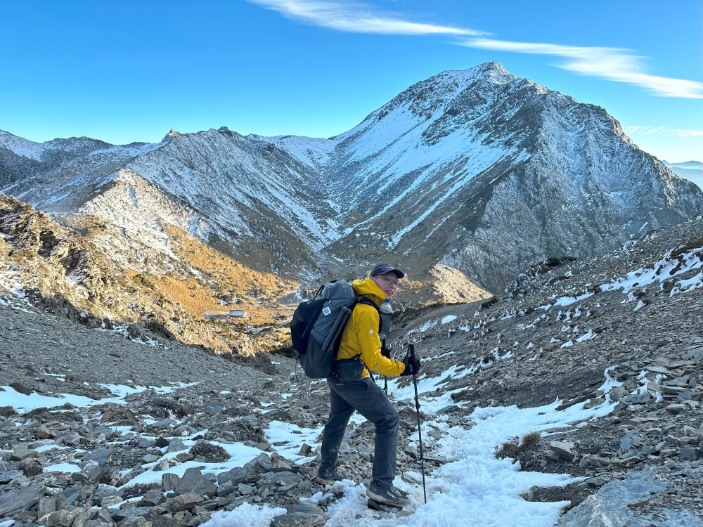 3 月,他背了 6.7 公斤重的攝影器材,加上特意輕量化的裝備,總重 13.14 公斤上山。從未爬過百岳的他,一踏上步道就深深受到台灣高山的吸引。見到雪景,更讓他感動不已,手裡的相機幾乎沒停過。觀景窗裡一幅幅銀白世界景緻,讓他怎樣都看不膩。
