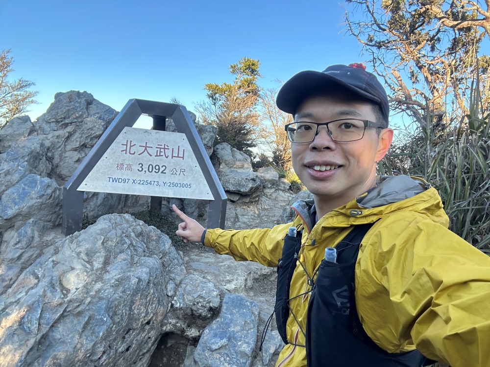 第三趟台北-百岳計畫,他也依然做足功課,一點都不鬆懈。儘管這趟的交通較單純,只要搭高鐵搭配租車,開車不到一個半小時就能抵達北大武山登山口,但他還是嚴謹地規劃什麼時間點必須做完成什麼進度。「我沒有去過北大武山,我看網路上很多人都說北大武山的山路很濕滑,但幸好我挑選的日子前一個星期都沒下雨,所以整條路線都算乾燥,很好走。原本預計九小時完登,最後只花七個半小時。」