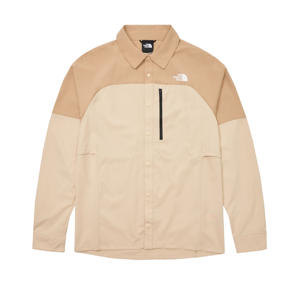 ▲左:女款防風舒適保暖風衣外套,售價 NT$6,380 / 右:男款卡其色吸濕排汗防曬休閒長袖襯衫,售價 NT$3,880
