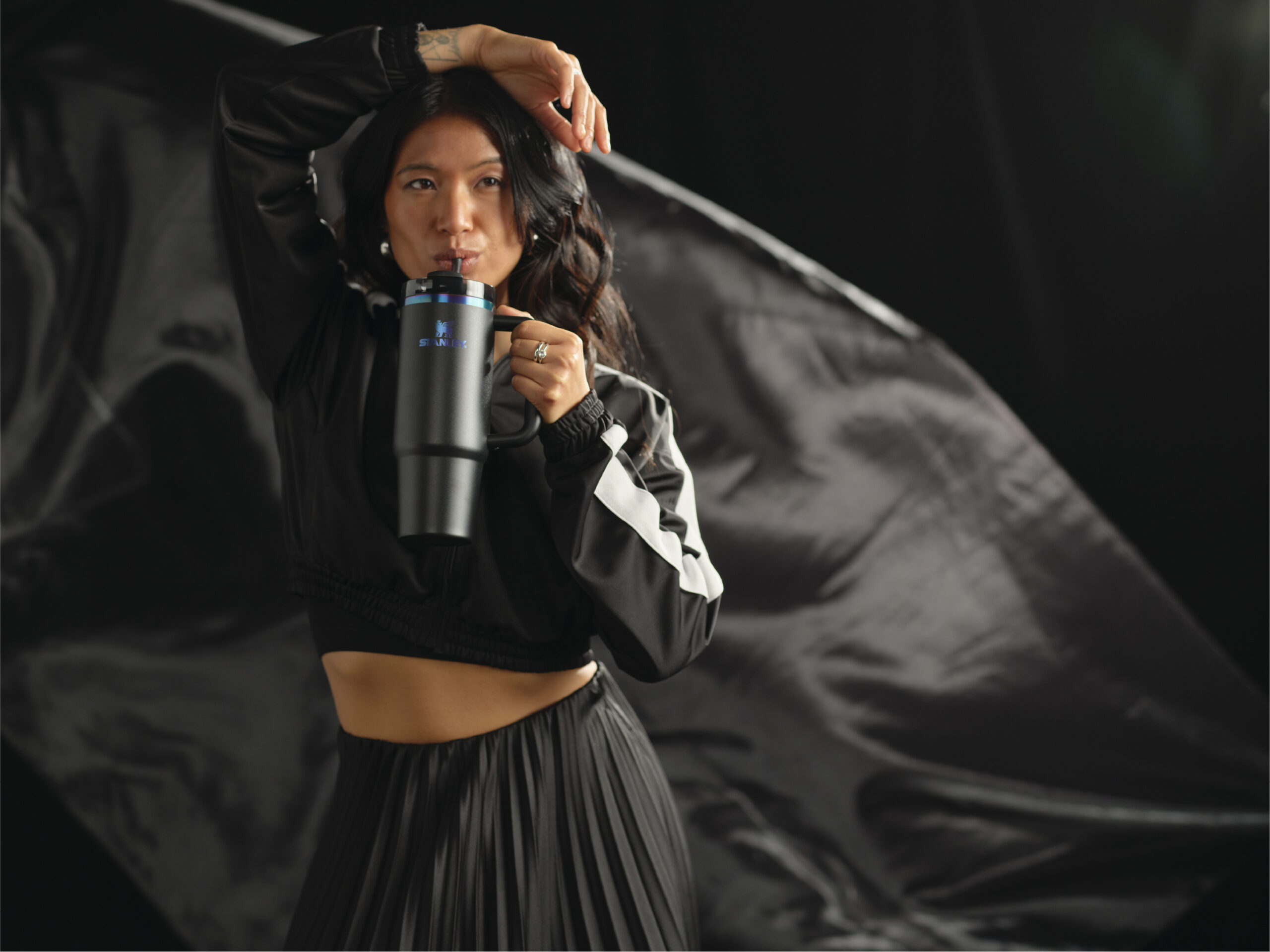 STANLEY 吸管隨手杯向來以多彩的顏色吸引社群目光,而這一次,輪到「炫光黑系列」引領高級時尚。