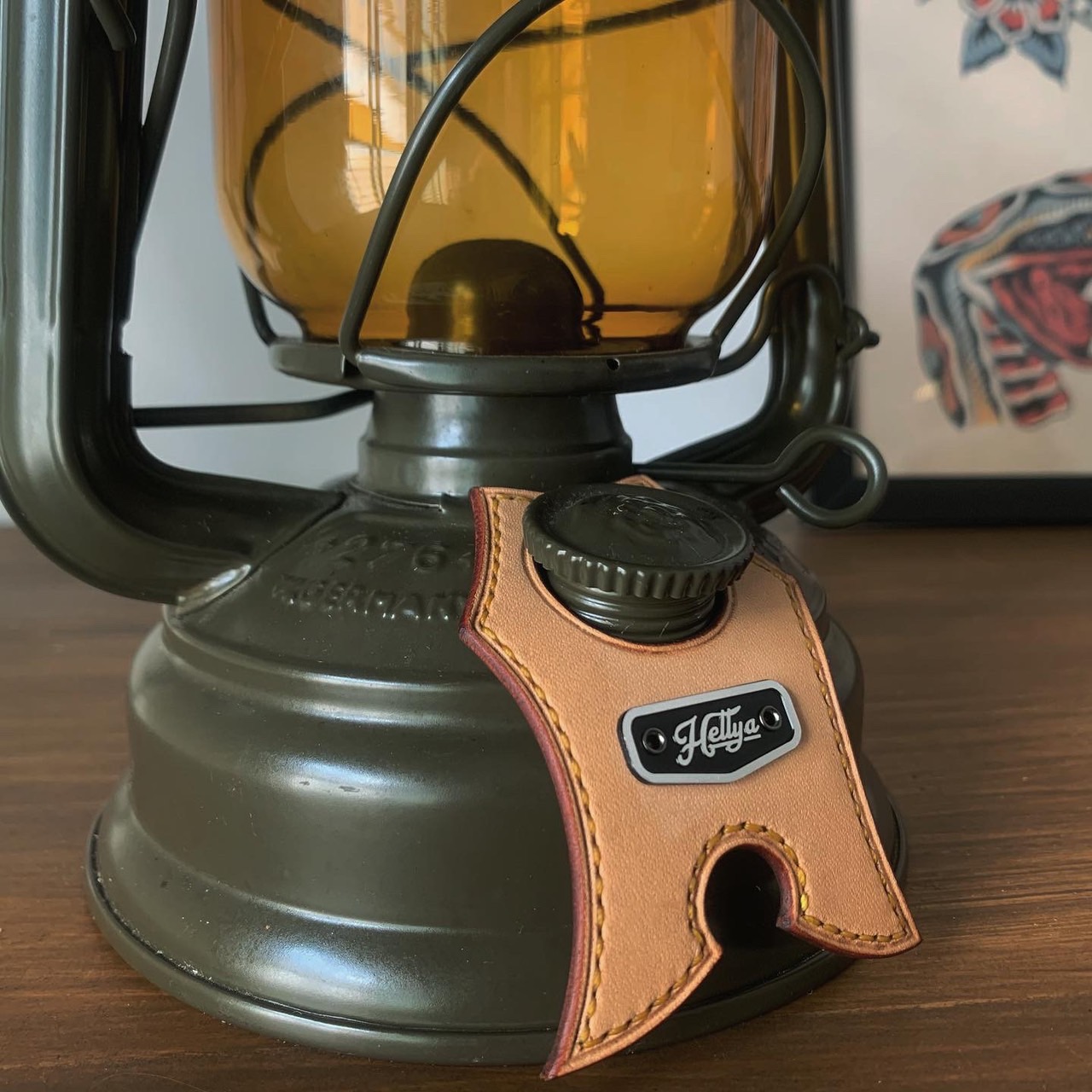 特殊意涵 / 技法 / 材料:之後只要是燈都會巧立名目扣個帽子給他。植鞣牛革。