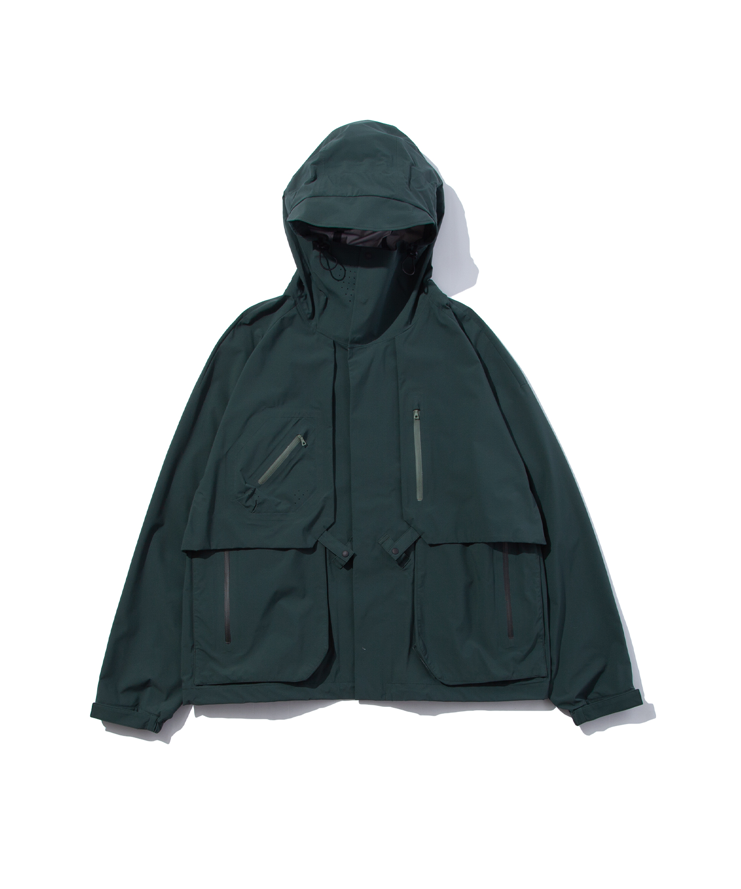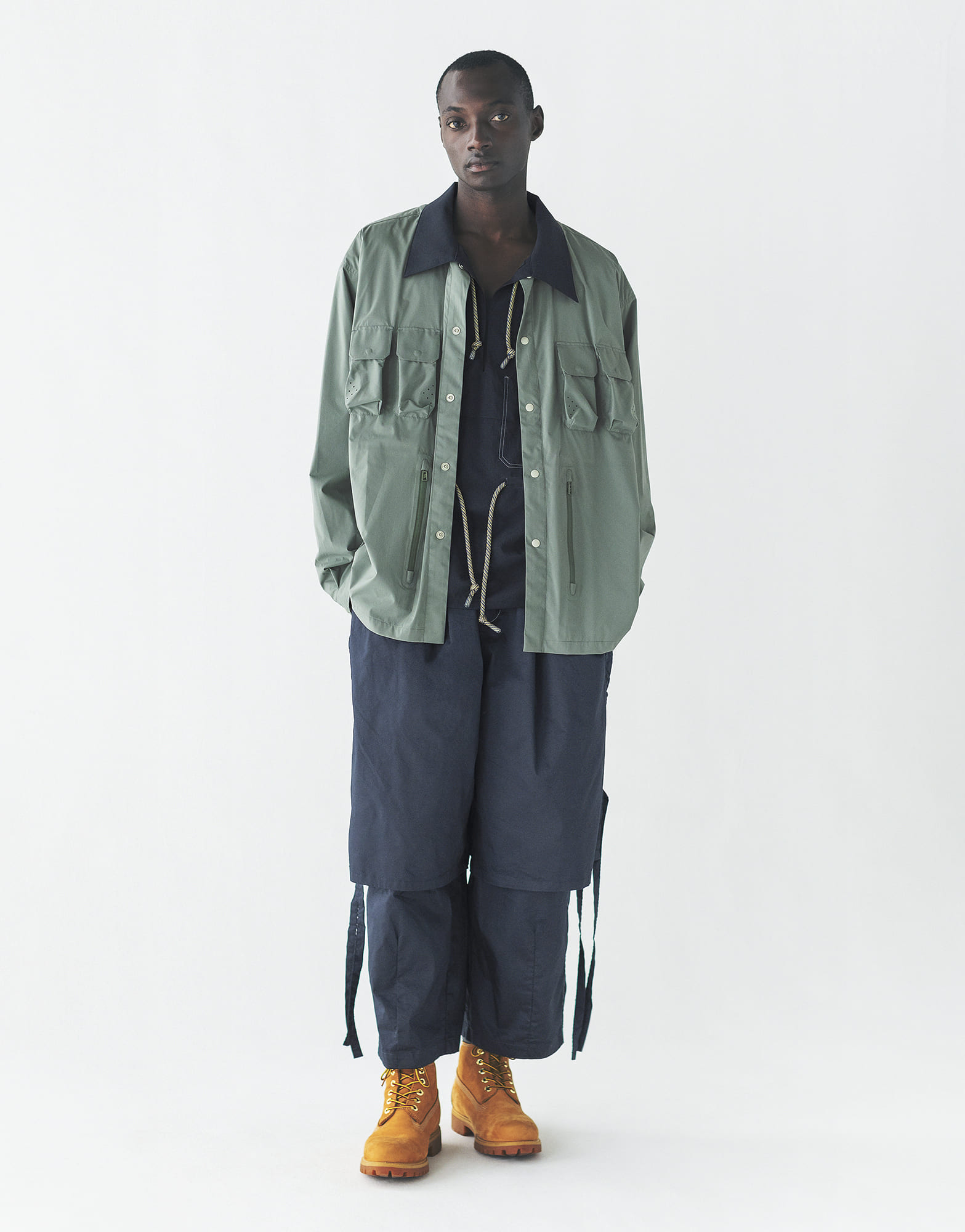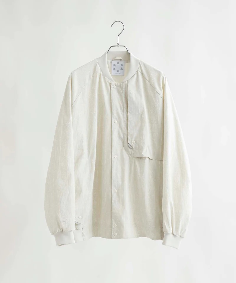 外套材質使用新開發的尼龍防水材料 Karu stretch Ⅱ,重量輕且具有高伸縮性 布料,表面經過C6耐久防水處理,可達到良好的防水效果,且具有抗皺功能並富有彈性,穿著舒適,版型較為寬鬆,可以在內裡混搭T-Shirt、襯衫、帽T等,造型多變。