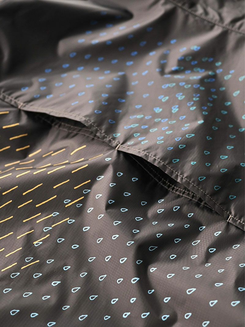本季推出的防水系列相關單品,大致上皆採用最新防水透氣材質 Pertex Shield 製成,具有高度防水性,可穿於戶外活動。Pertex Shield 是一種採用特殊製造方法製成的奈米纖維膜,由無數微孔組成的多層結構膜,讓空氣順利通過,提供優異的透氣性,不必擔心汗水會悶在衣服,即使在台灣炎熱潮濕的氣候以及體力較多的活動中,也能有效防雨防風。