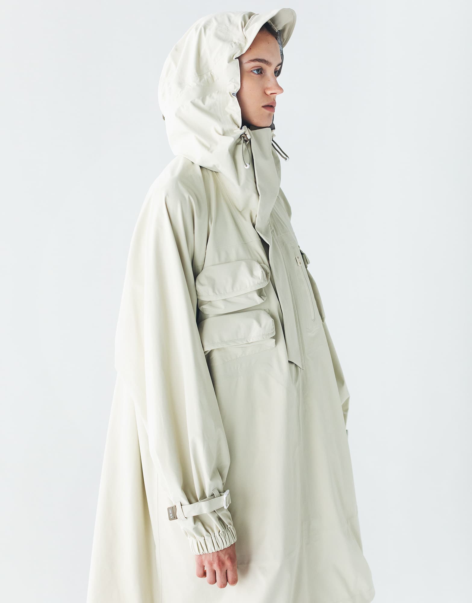 Pertex Waterproof Coat 帶有全接縫膠帶的高度防水設計,輕質、柔軟的面料易於收納,大衣式外型也增添時尚感。