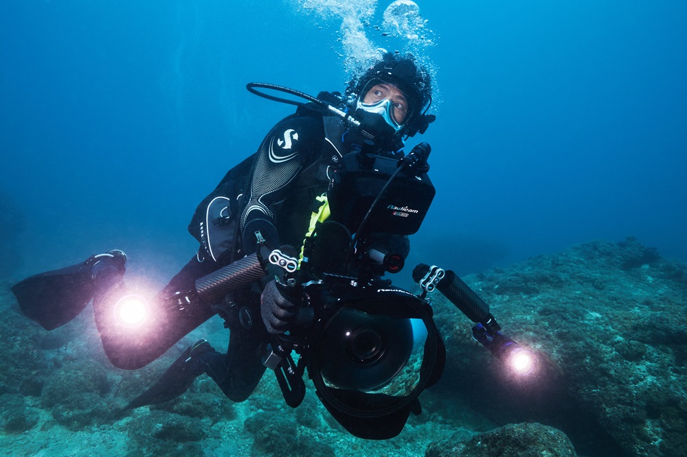 白叔:我自己難忘的故事是,有一次拍攝我身處五十幾米的深海中,因為我一手拿著攝影機,我只有一隻手可以換氣,結果我不知道自己咬到管,我就開始喝水,你知道在五十幾米的海裡喝水是多可怕的事,然後人生跑馬燈就開始出現,我第一件事是想,我應該會上社會版新聞,接著第二個想法是,我會被寫製作人,還是知名製作人,短暫出現這些很荒唐的想法,還好我的潛伴在這時轉頭發現我的異狀,即時解救我,一陣狂咳之後想說還要進行減壓才能回到水面,所以我就決定繼續進行拍攝,拍完之後再好好做減壓。