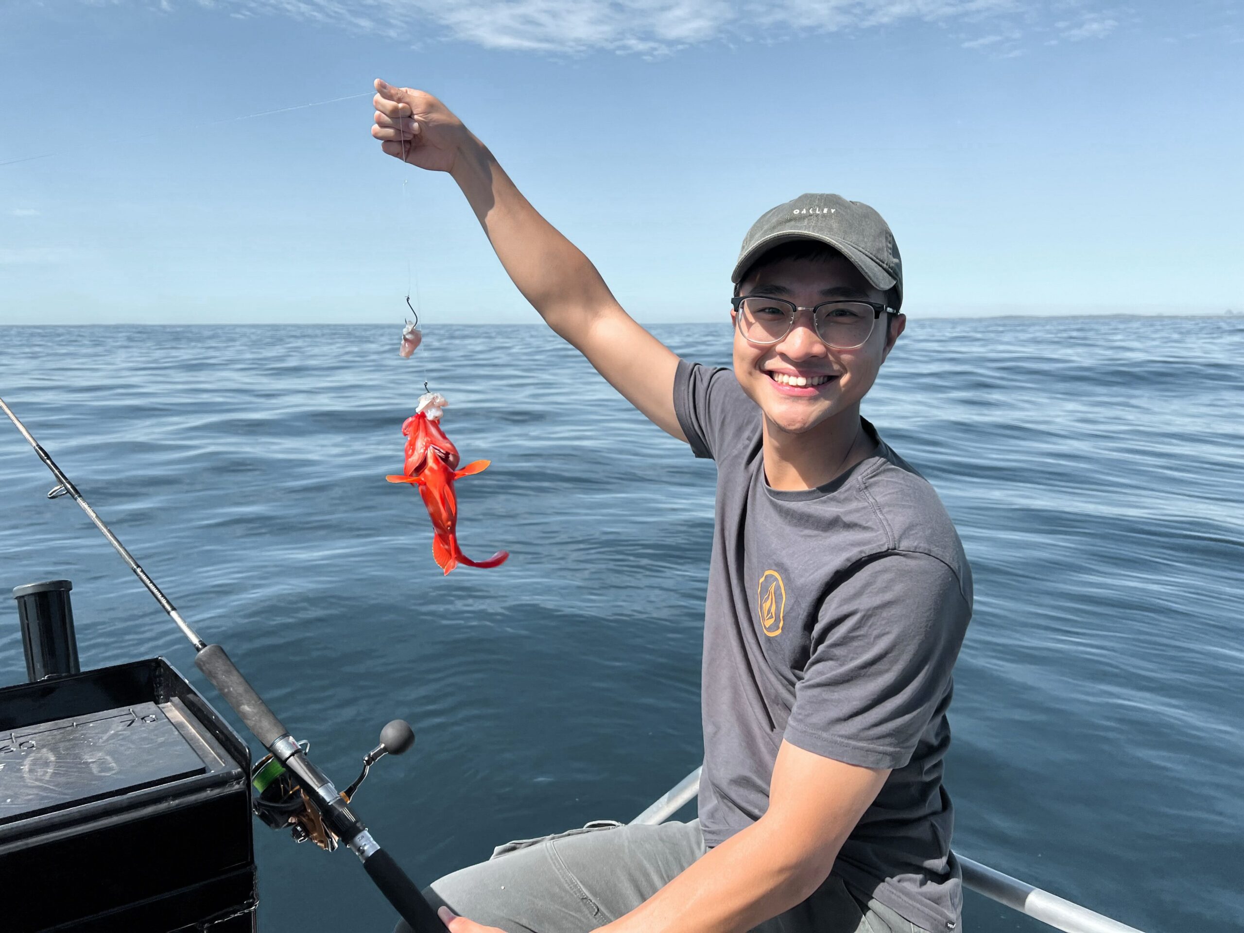 ▲ Wei 在大堡礁潛水與龍王鯛合照