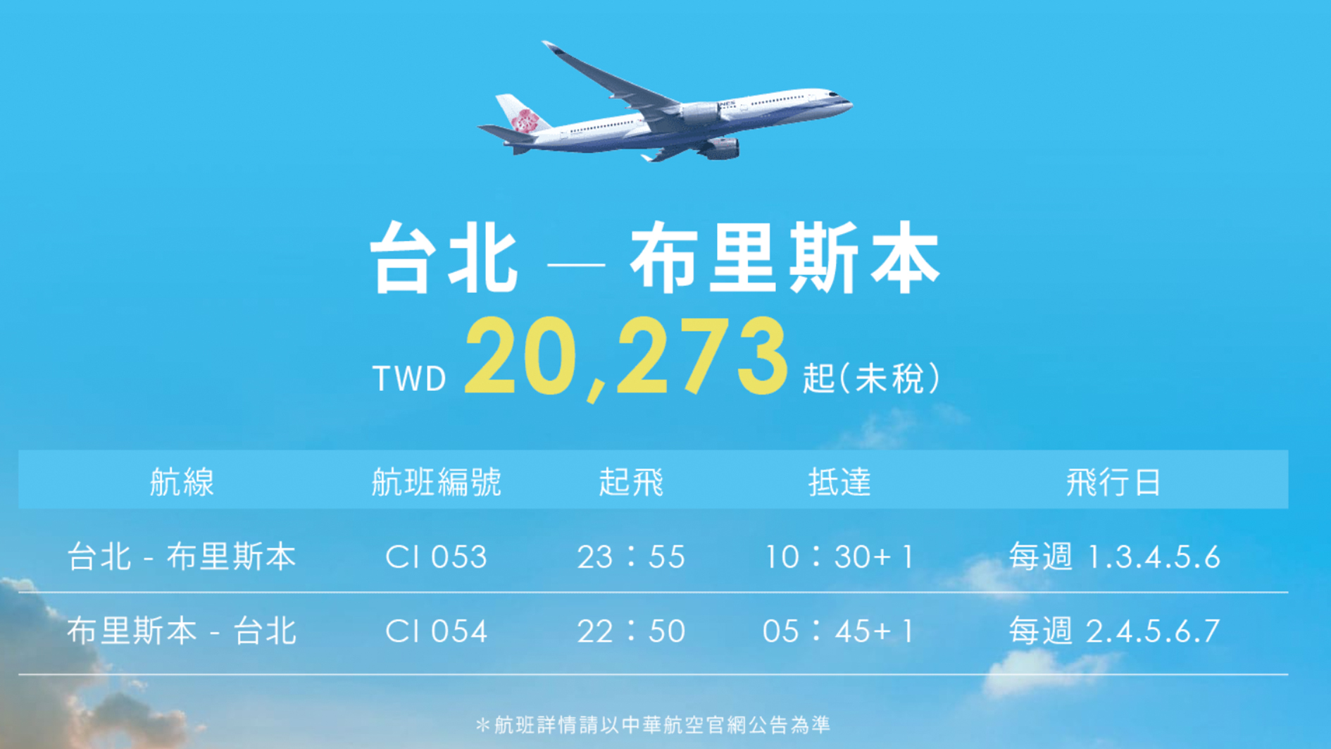 我曾在《寂寞星球》中讀到一句話:「當你決定出發,最困難的事就已經解決了。」而若能選擇華航直飛航班舒適地前往布里斯本,能減少轉機的舟車勞頓,讓自己更有精神活力面對全新的冒險,就再好不過了!我知道華航每週有五班也是台灣航空公司直飛選擇最多的航班,旅人在安排行程的自由度更大大提升,順帶一提,我去布里斯本也都是搭華航喔!