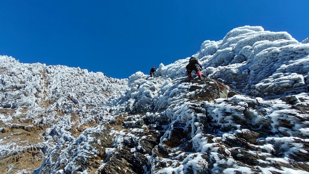 小鬍子教練相當強調風險管理,這是因為他自己也曾遇過高風險的情境,若沒有充足的知識與冷靜的思維,恐怕難以度過當下的挑戰。「像是我之前爬玉山北壁,我爬到一半覺得很困難,但我是 free sol0,沒有人幫我,我也沒有確保,我能怎辦?經驗告訴我,我就是要做好當下該做的事情,慌張解決不了問題。我仔細觀察地形,運用我所學的知識,最後成功度過了困難的難關。這是我希望傳達給學員的,我要讓他們知道,戶外活動一定有風險,但只要掌握知識與技術,配合冷靜思維,就能降低風險。」