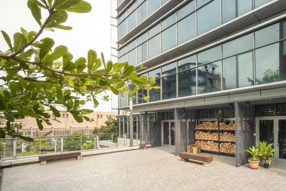 2樓露台區,設置全新以杉木堆砌的木材牆,歡迎大家來這裡打開拍照。2樓露台在未來也鋪上如露營場的碎石地,未來這裡將是不定期焚火活動的主場地,讓大家在這裡享受城市焚火氛圍。