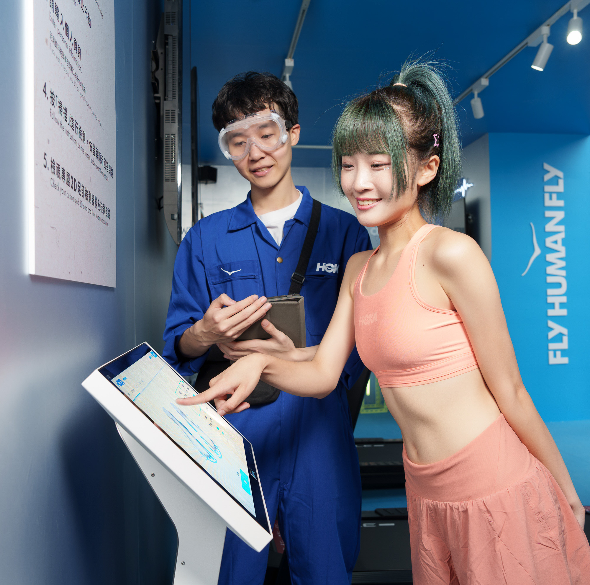 HOKA FlyLab 於信義 A11 南大門廣場限時開張,以全開放的實驗室風格設計打造超酷炫的跑步空間展現創新的品牌核心,身穿實驗室制服的 HOKA 特工將於現場帶領消費者換上 HOKA 跑鞋,體驗最尖端的跑鞋科技,並在跑步機上加速奔跑,觀測 LED 螢幕上的動態能量轉變與自身跑步等級,並可現場體驗國際知名 SafeSize 3D 足測機,在站上機台後的 30 秒內即可獲得完整的足型分析結果,包含腳部長度、寬度與足弓高低,再選擇對應的運動與目的需求,推薦出最適合的 HOKA 鞋款。完成體驗還可獲得 HOKA 產品折價券與專屬小禮,邀請廣大消費者進入實驗室親身體驗!