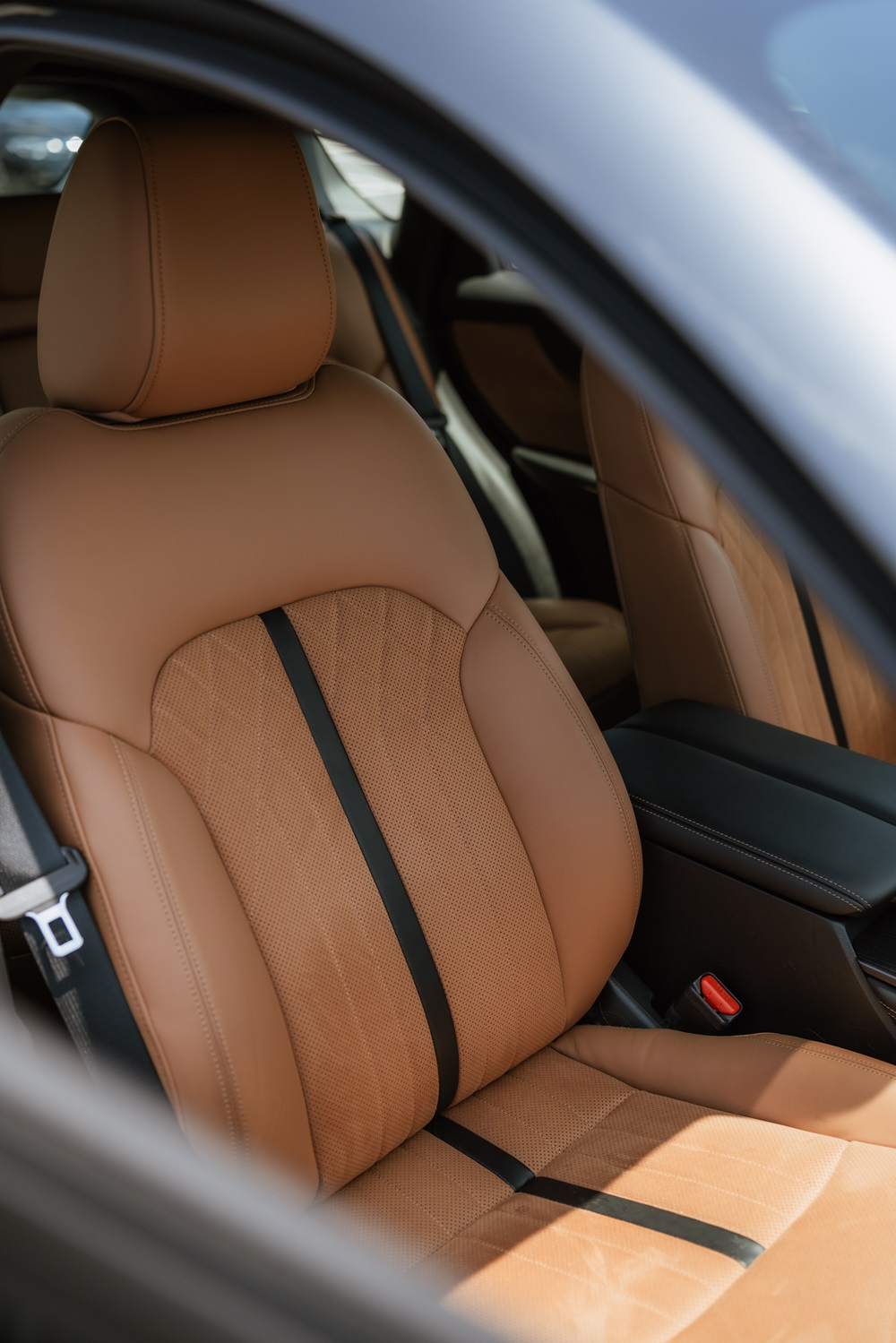 ▲暖沙棕的內裝,質感瞬間提升,中央以麂皮材質包覆。