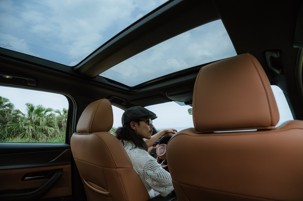 ▲ 33T 專用配備「雙模式大型全景天窗」,提升了整體開闊度,如同 Owen 的住處一樣,窗門外就是山海一色的景觀,在車裡也像在家中般舒適。