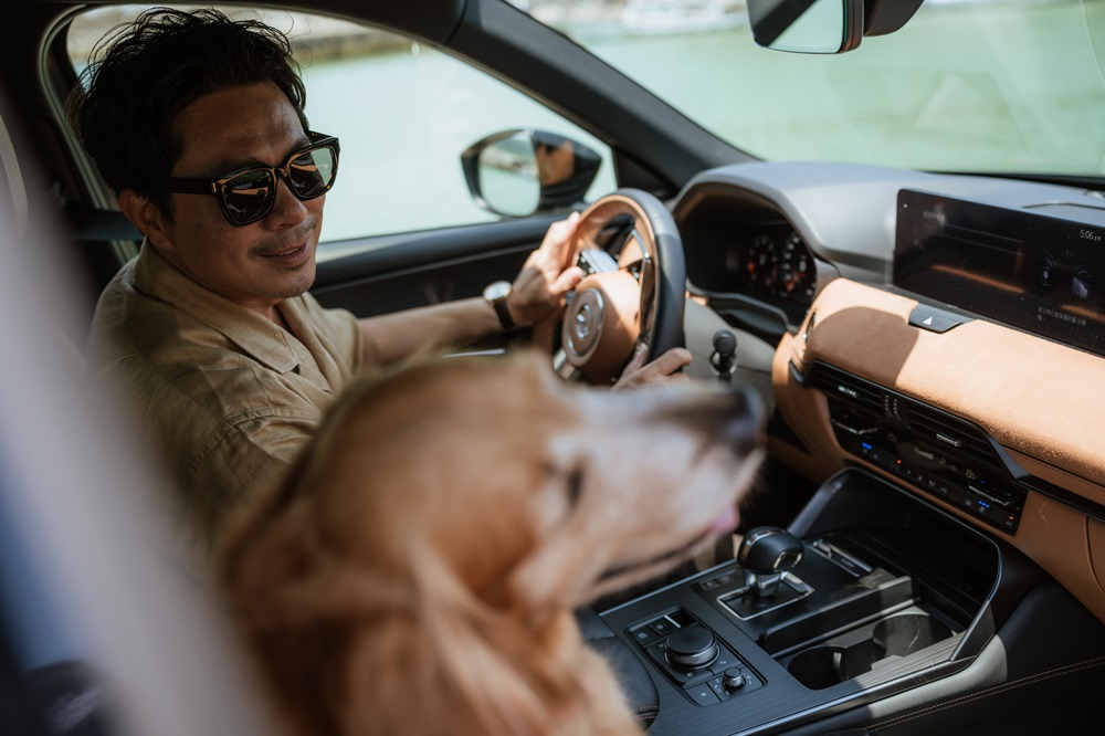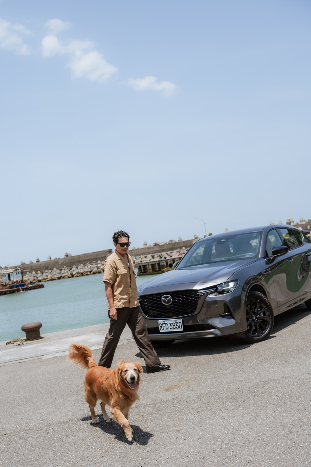 佩戴著招牌墨鏡造型,眼前這位品格高尚的紳士,副駕駛座還有一隻可愛的黃金獵犬 Yana 探頭出來迎接我們,他是知名五大傑出華人水下攝影師,同時也是位列全球百大不可不知的水下攝影師-Yorko Summer(後簡稱 Yorko)。Yorko 趁著工作空檔,開著 Mazda CX-60 33T AWD Premium Sport 在濱海公路上與愛犬享受都市逃離的放逐之旅!