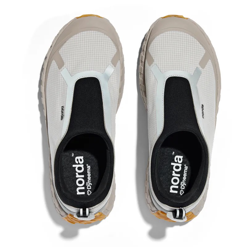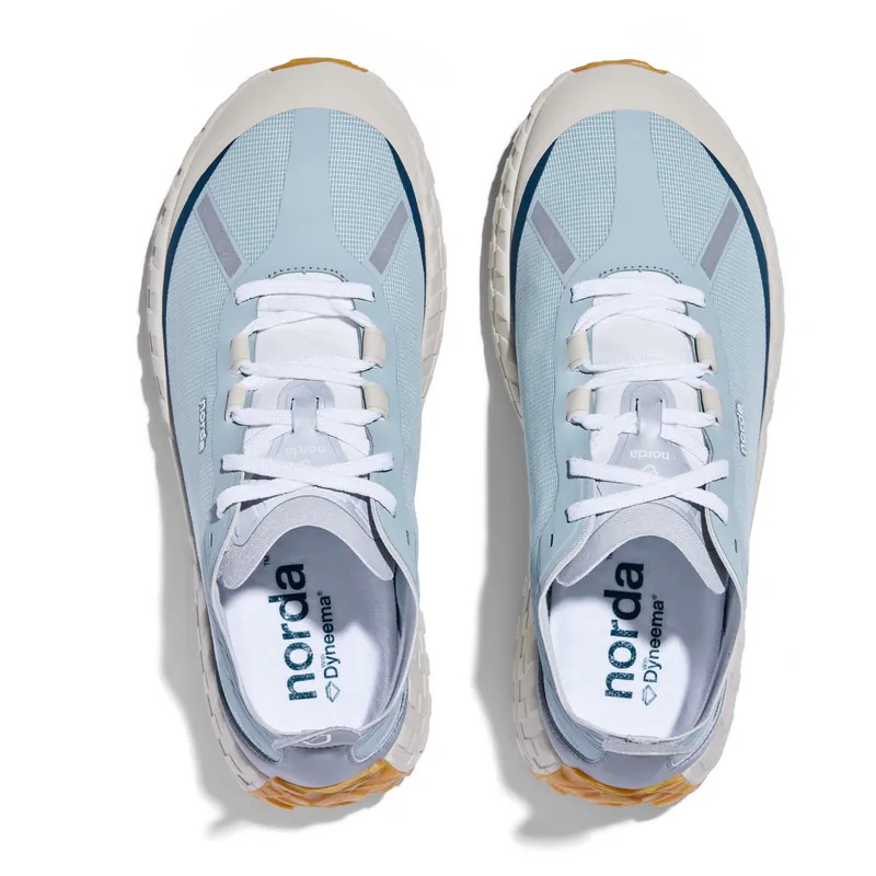 首度問世於 2020 年的加拿大新銳鞋履品牌 Norda,由越野跑者 Nicholas Martire 和 Willamina Martire 所創立,而兩位以自身實戰經驗,以征服加拿大各地極端環境與嚴峻氣候為基礎,創新獨家開發出全球最強韌而又最輕的布料 Bio-Dyneema®,搭載 Vibram 為Norda 獨家研發的超輕量 SLE® TECHNOLOGY中底及 LITEBASE® 結構 MEGAGRIP® 大底,提供出色緩震和抓地效果, 打造出野跑界最強的NORDA 001,更被譽為「越野跑鞋的藍寶堅尼」。