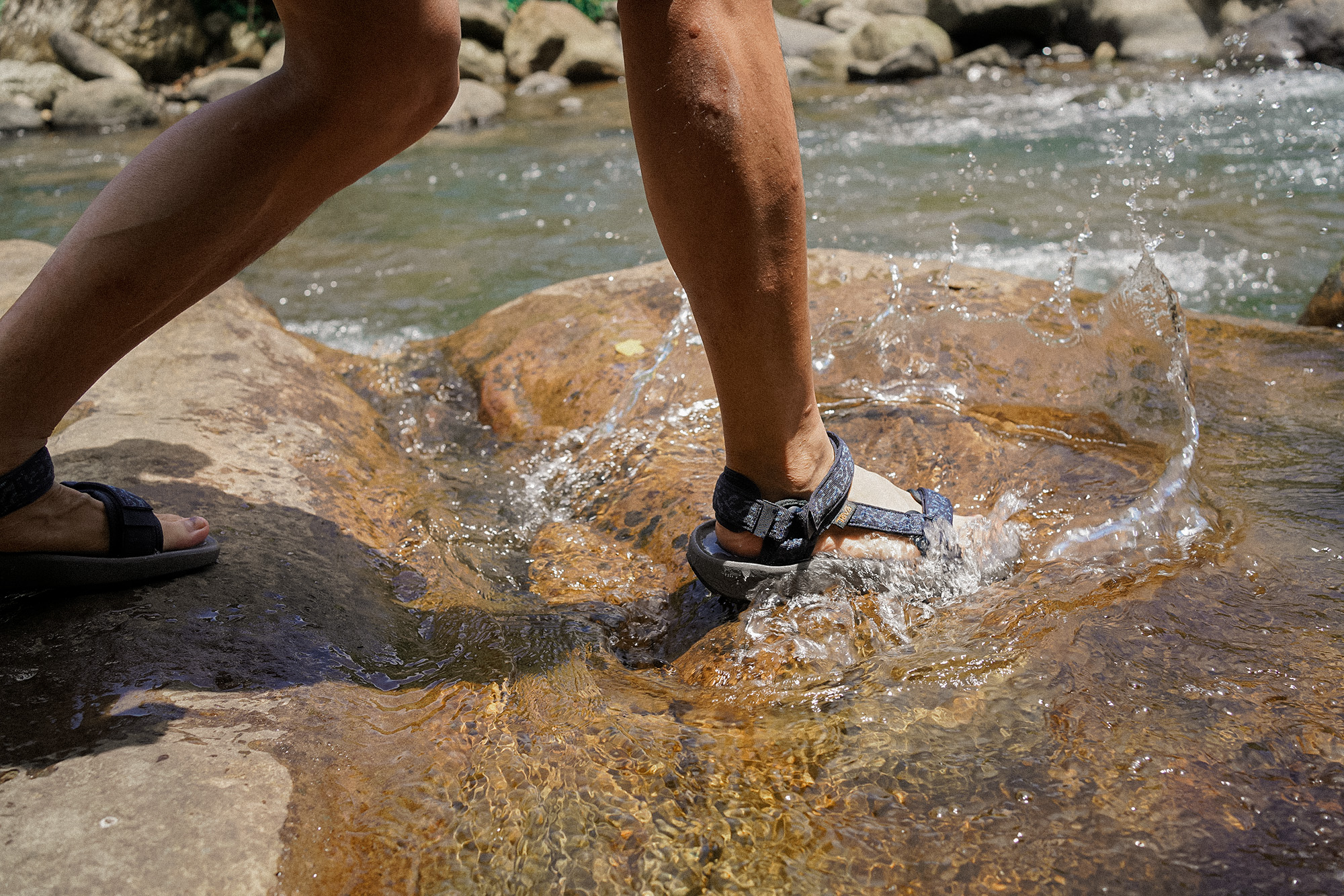 Teva 全新專為水域冒險而生的 Hydratrek 樹蛙機能涼鞋,以樹蛙蹼六角形細胞為其設計靈感,強調能在水域及濕滑地形充足吸附岩石表面,展現絕佳抓地和防滑性及快速的排水性能,適合划船、SUP、釣魚、海邊和溪邊瀑布等各種水域活動的探險。