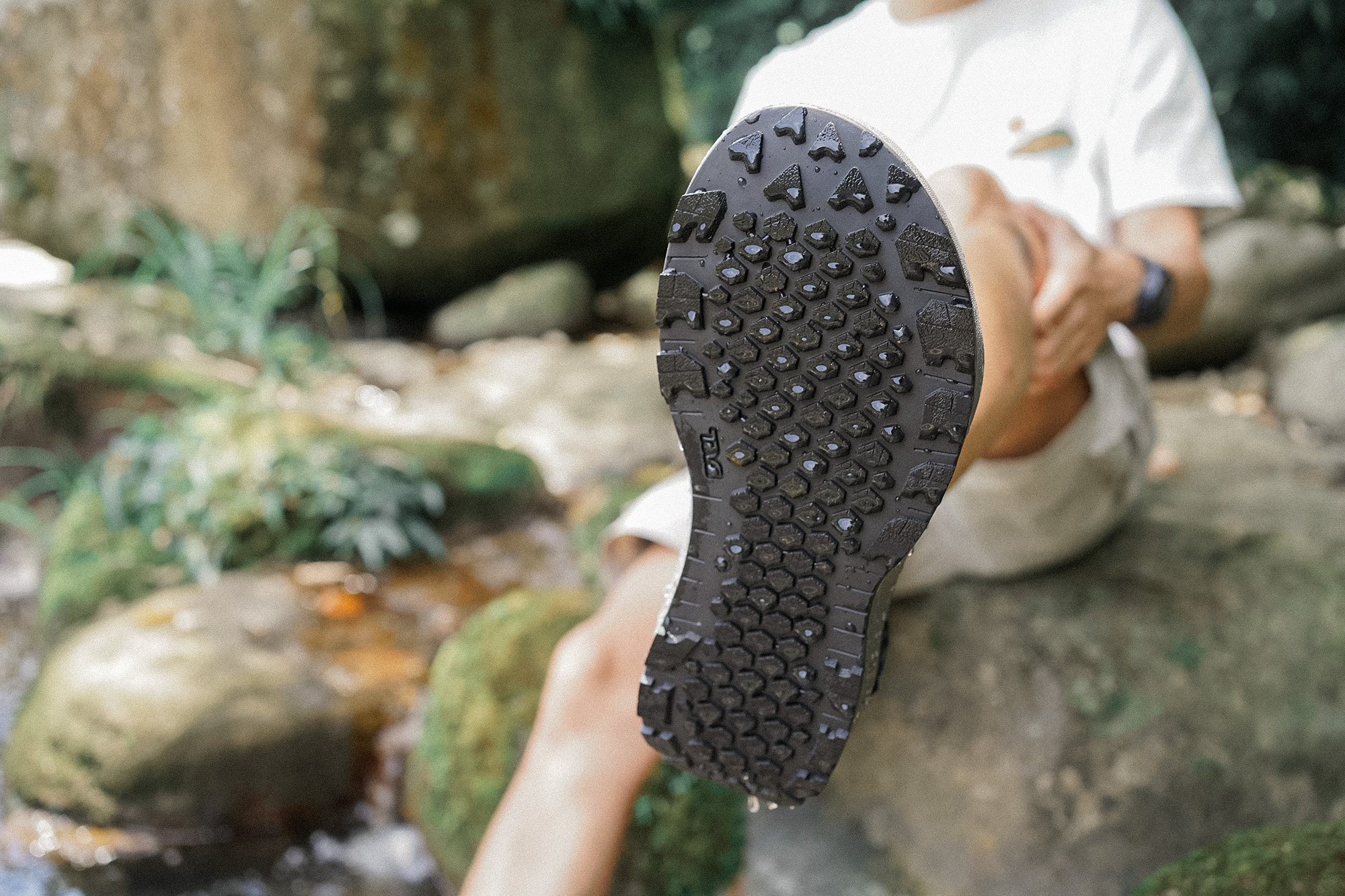 編輯擁有三雙 Teva 不同型號的機能涼鞋,這次實際體驗過後最大的差異無非是鞋底刻紋帶來的穩定性,Hydratrek 鞋底採用樹蛙吸盤形狀設計,更搭載獨家科技水蜘蛛大底,特殊大底刻紋讓在進行親水活動時防滑功能更強,適應後也越走越快,走在溪石中也不用像過去小心翼翼,甚至是有些微青苔的石頭也能安全過關(若是布滿青苔的石頭仍不建議直接行走,請務必留意腳下狀況)。