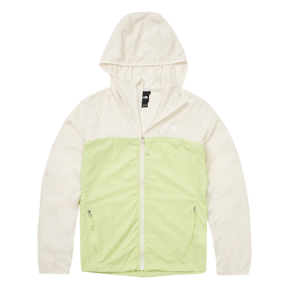 ▲左:女款 UPF 綠色防曬涼感連帽外套 NT$4,380 / 右:女款UPF米白色防風防曬立領外套 NT$4,880