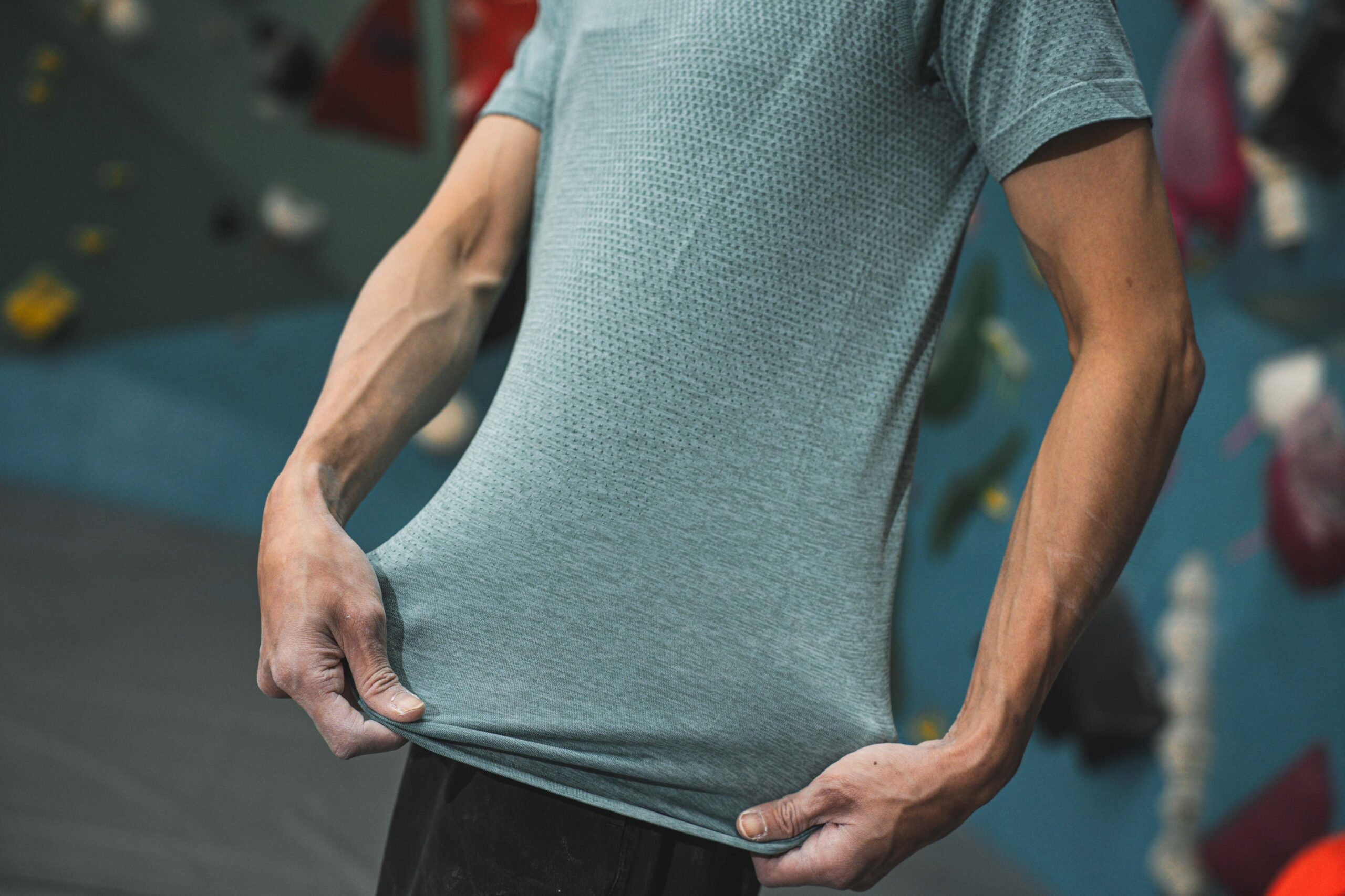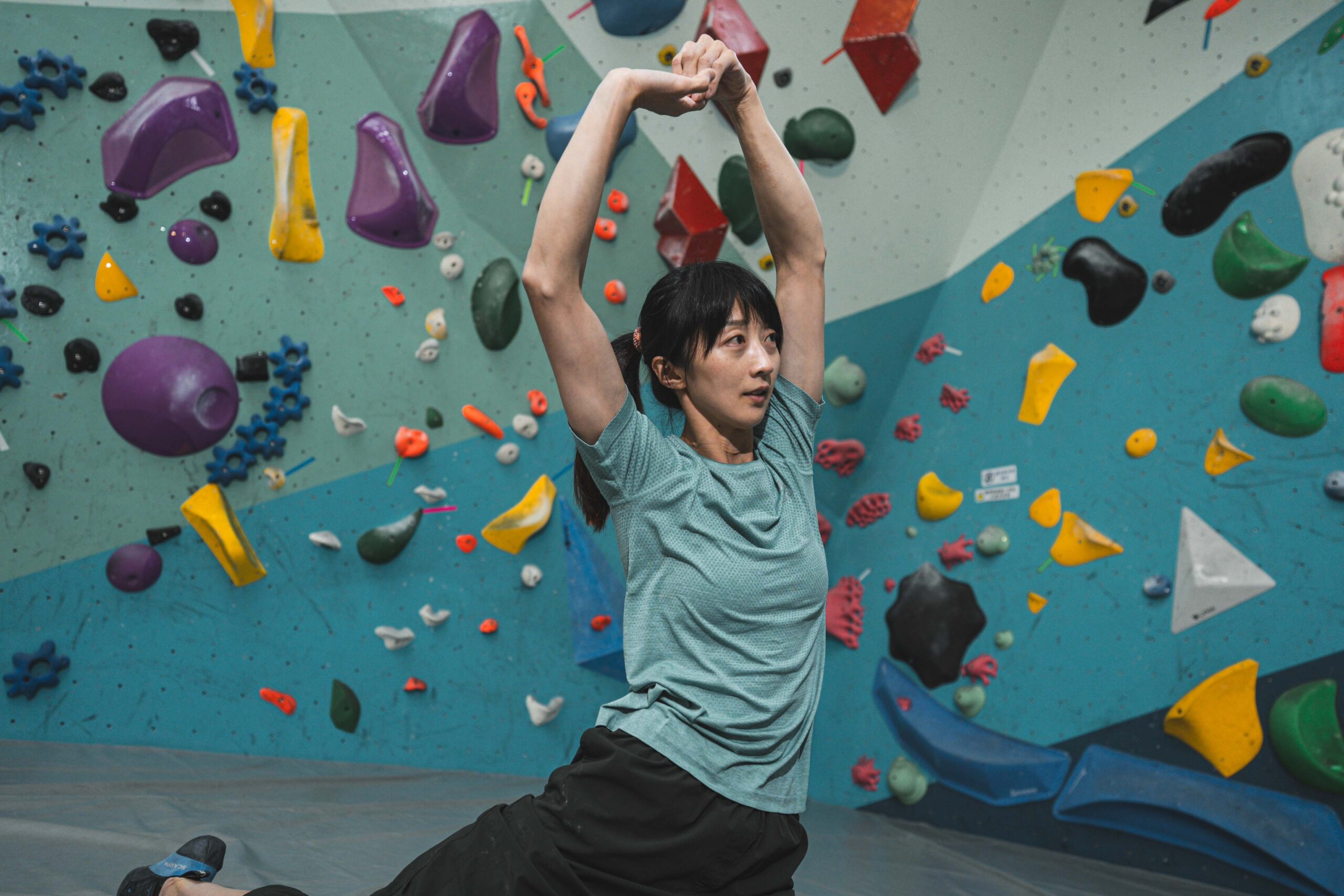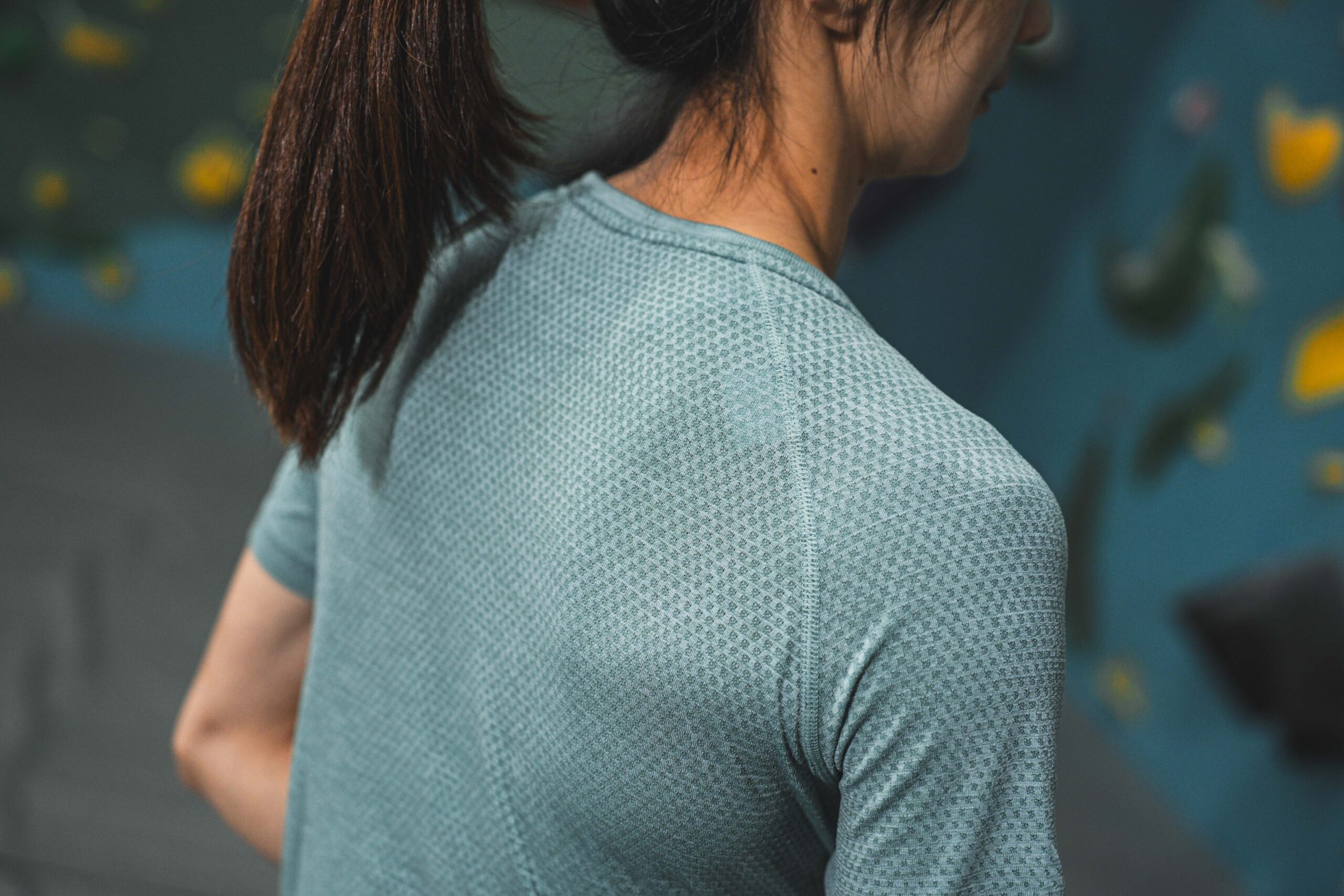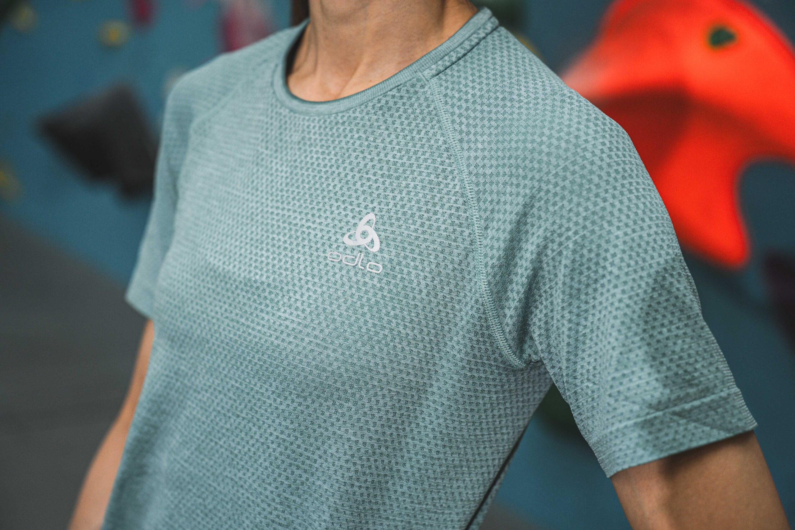 ▲ Odlo SEAMLESS 短袖 T-SHIRT 無縫編織技術,除靜態延展時不卡肩外,在面對需要大動作攀越、抓握的活動時,依然能提供絕佳的延展性能,幫助虹瑩展現真實力。