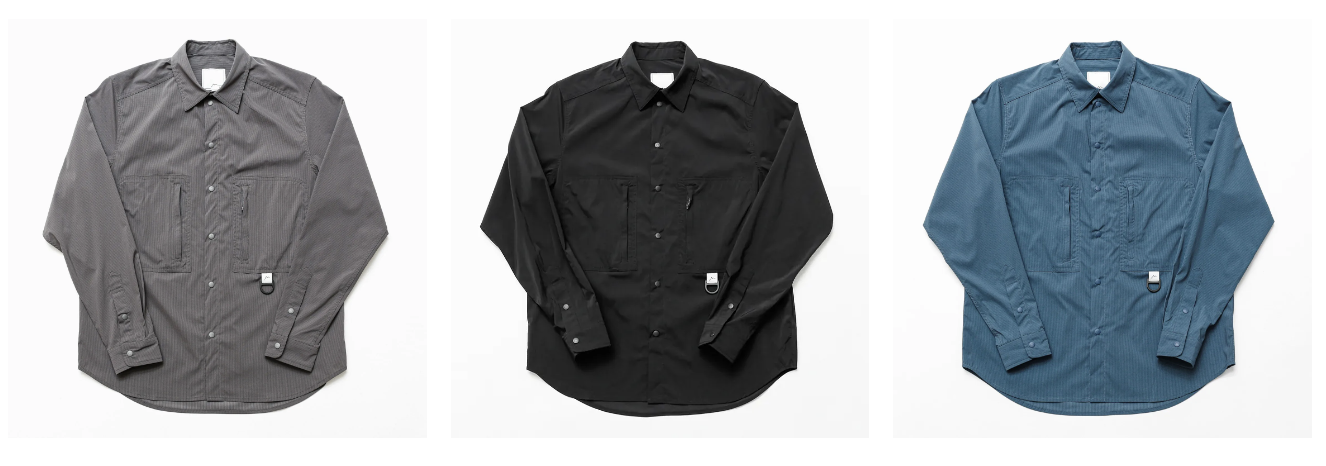 來自南韓的戶外品牌 CAYL 的彈性尼龍襯衫 Stretch Nylon Hiker Shirts 具有彈性的按扣襯衫設計成可以穿在 T 恤外,也不會悶熱難耐,非常適合提供適度的防風保護。
