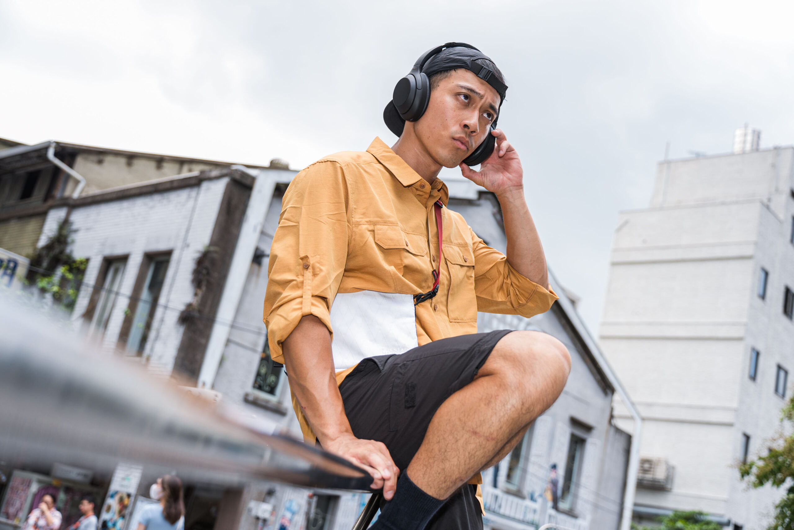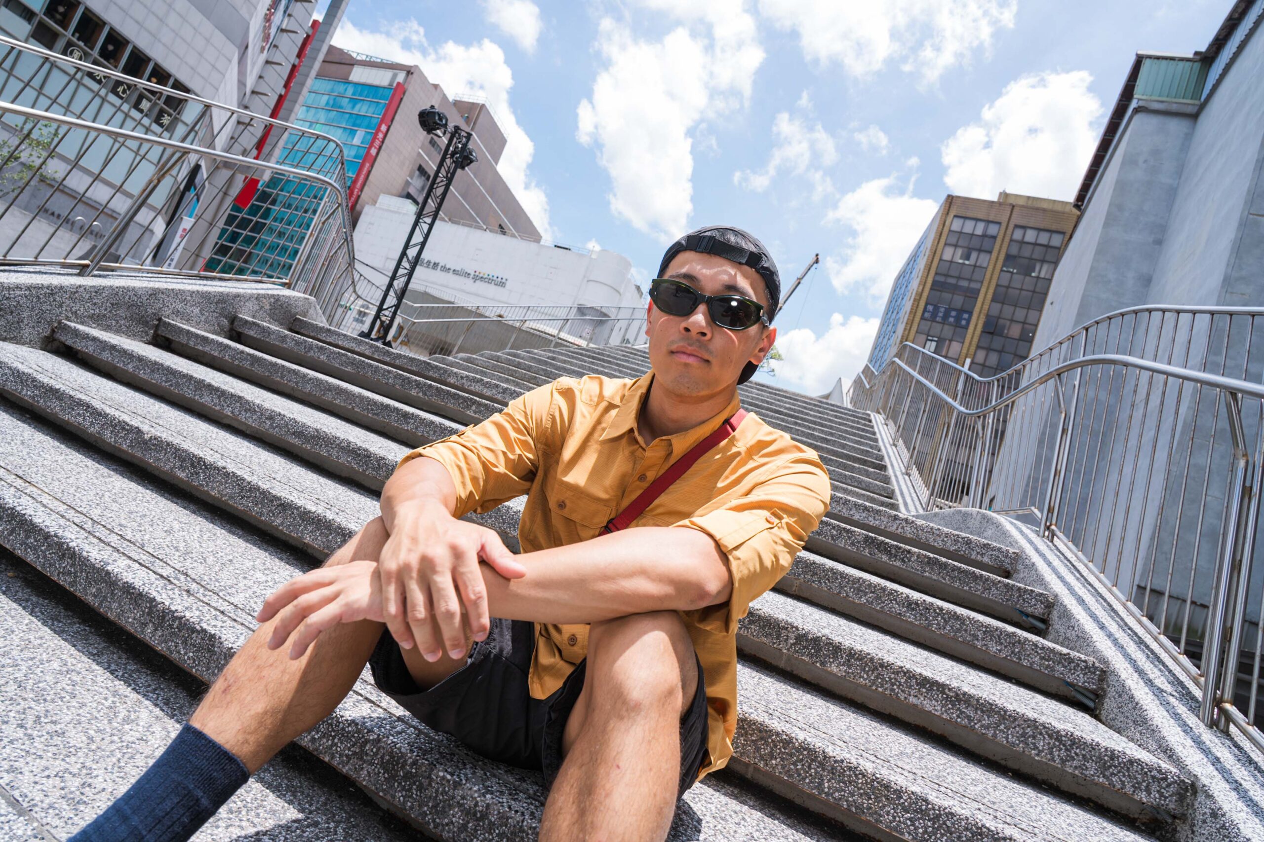 我們接著轉場至中山商圈,在繁忙的都會生活中,穿搭不僅僅是美學的表現,更是一種功能與實用性的結合,除了 Gorpcore 機能感十足的穿搭外,在城市街頭 Dodson 則有其他穿搭心法:「在城市我喜歡 Cityboy 日系穿搭或 Clean Fit 這種經典風格,強調簡約時尚和乾淨俐落。」他也會運用上下衣著的寬鬆差異展現層次,像是上寬下窄、上窄下寬的方式做搭配。