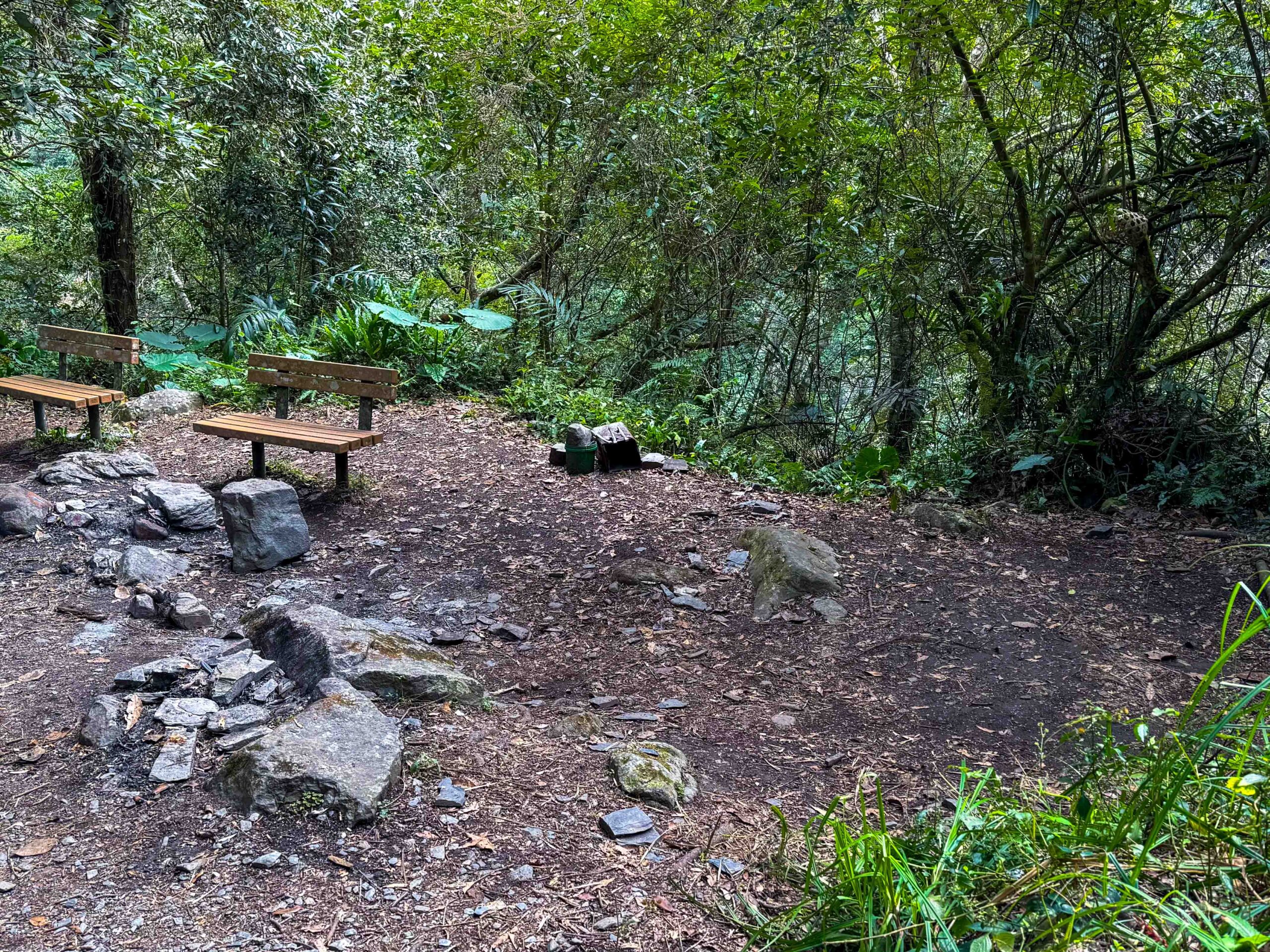 除此之外,在下切前擁有潭景第一排的完美營地,更是讓戶外玩家津津樂道,除了岩壁奔湧而下的野溪溫泉外,夏日更能享受冰涼溪水、暢游深潭,營地腹地不多,建議及早前往,或往上紮營廢棄長椅營地區。