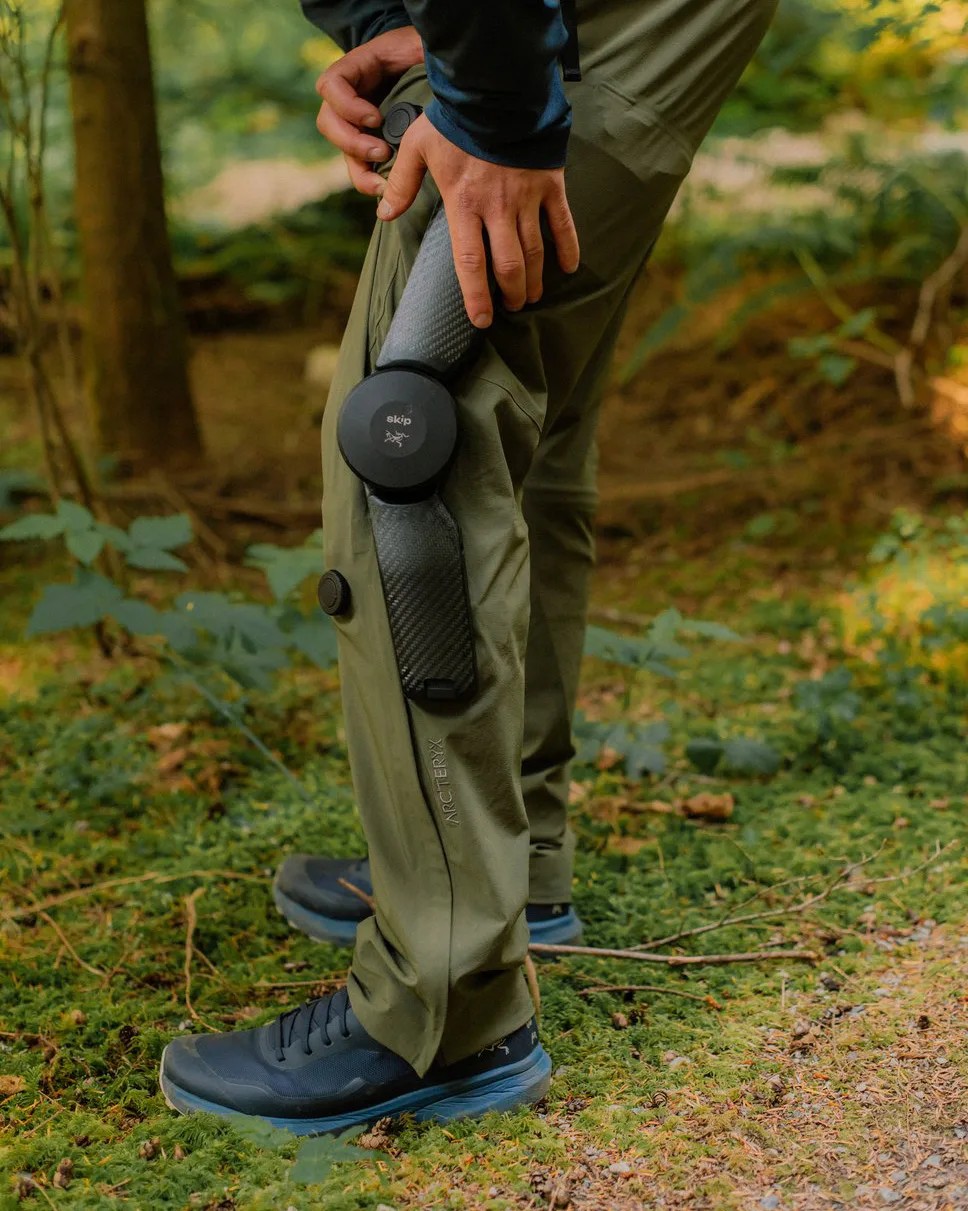 Arc’teryx 與新創公司 Skip 合作研發出一條可動力輔助登山的褲子,名為 Mo/Go (名字取自山羊 Mountain Goat)。這條褲子以 Arc’teryx Gamma 為基礎,在膝蓋處安裝一顆馬達,透過馬達驅動,可增強股四頭肌與其他腿部肌群的力量。根據 Skip 說法,在面對越陡峭、爬升或下降距離越長的路段時,這條褲子能起到越大的作用。