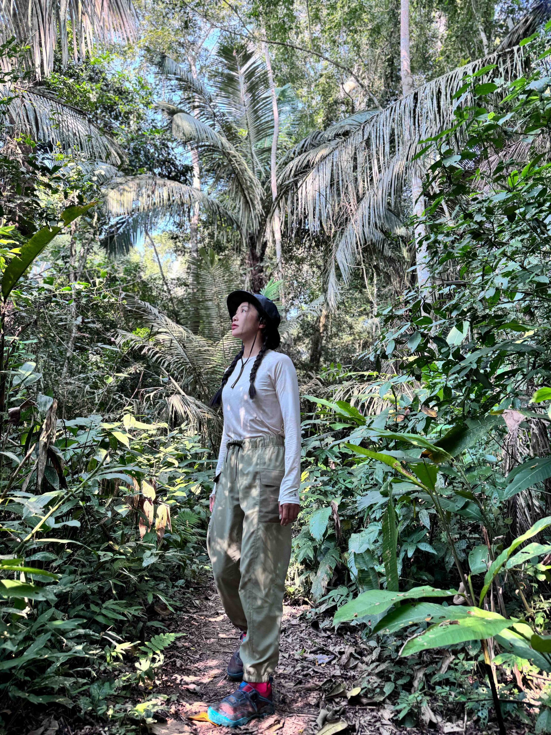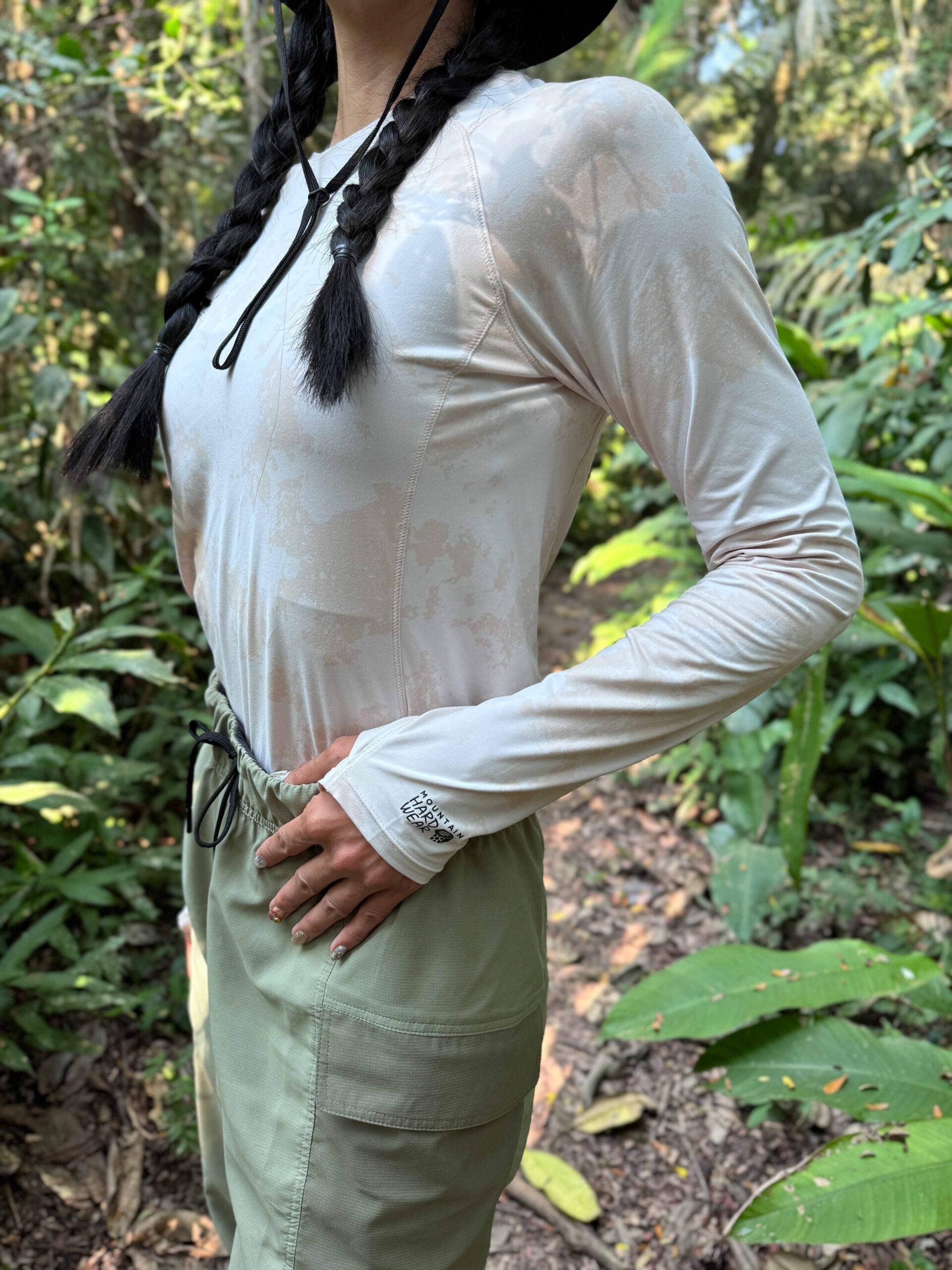下午,我們沿著 Taricaya Ecoreserve 的原始森林進行探險健行。這裡有著 300 多年的古老樹木,生態環境豐富多樣。叢林中的蚊蟲數量繁多,因此穿著不貼身的長袖長褲是必要的,Crater Lake Long Sleeve Crew 和 Trail Sender Pant 在這樣的環境下,既能防止蚊蟲叮咬,又不會感到悶熱。