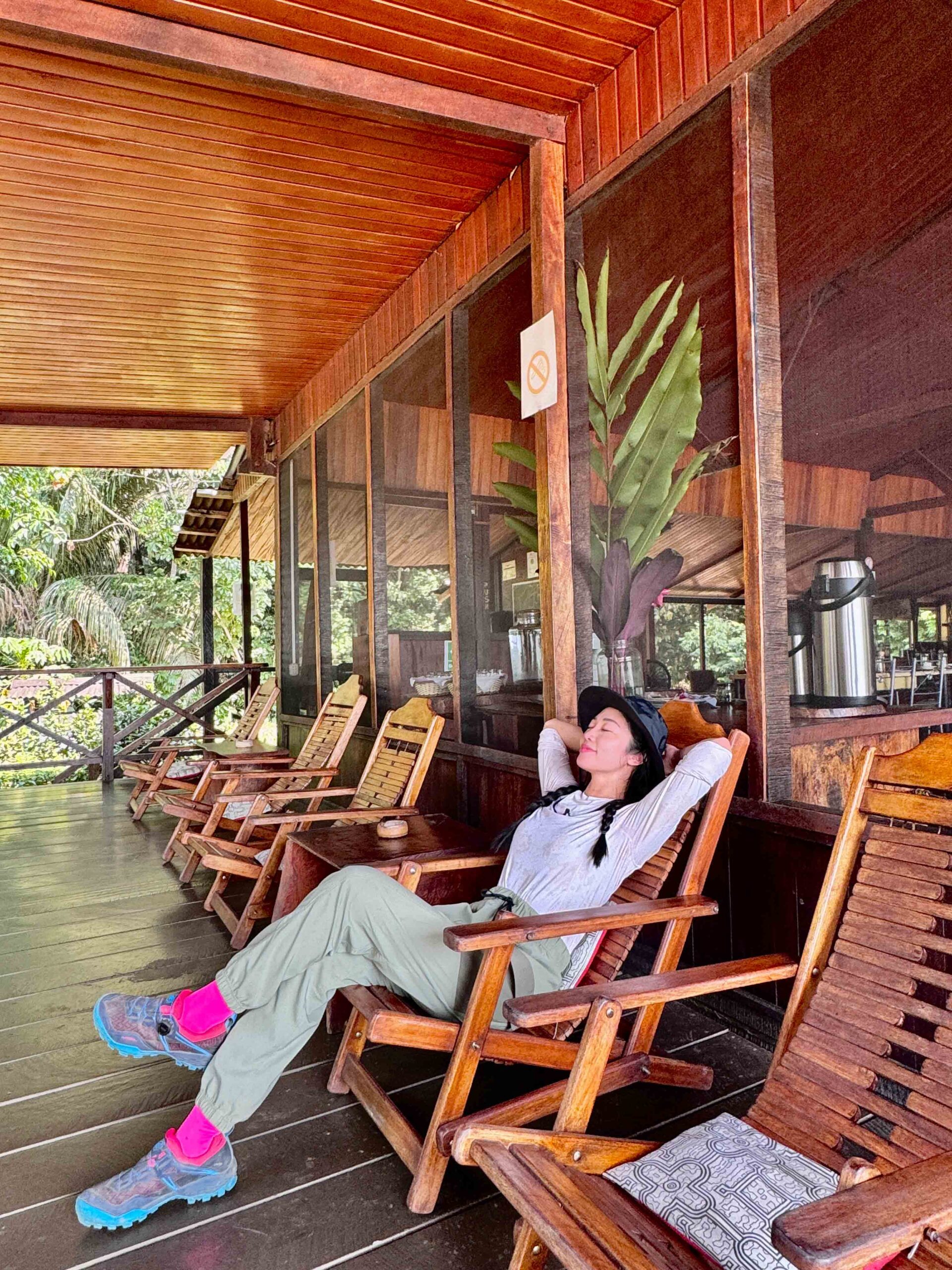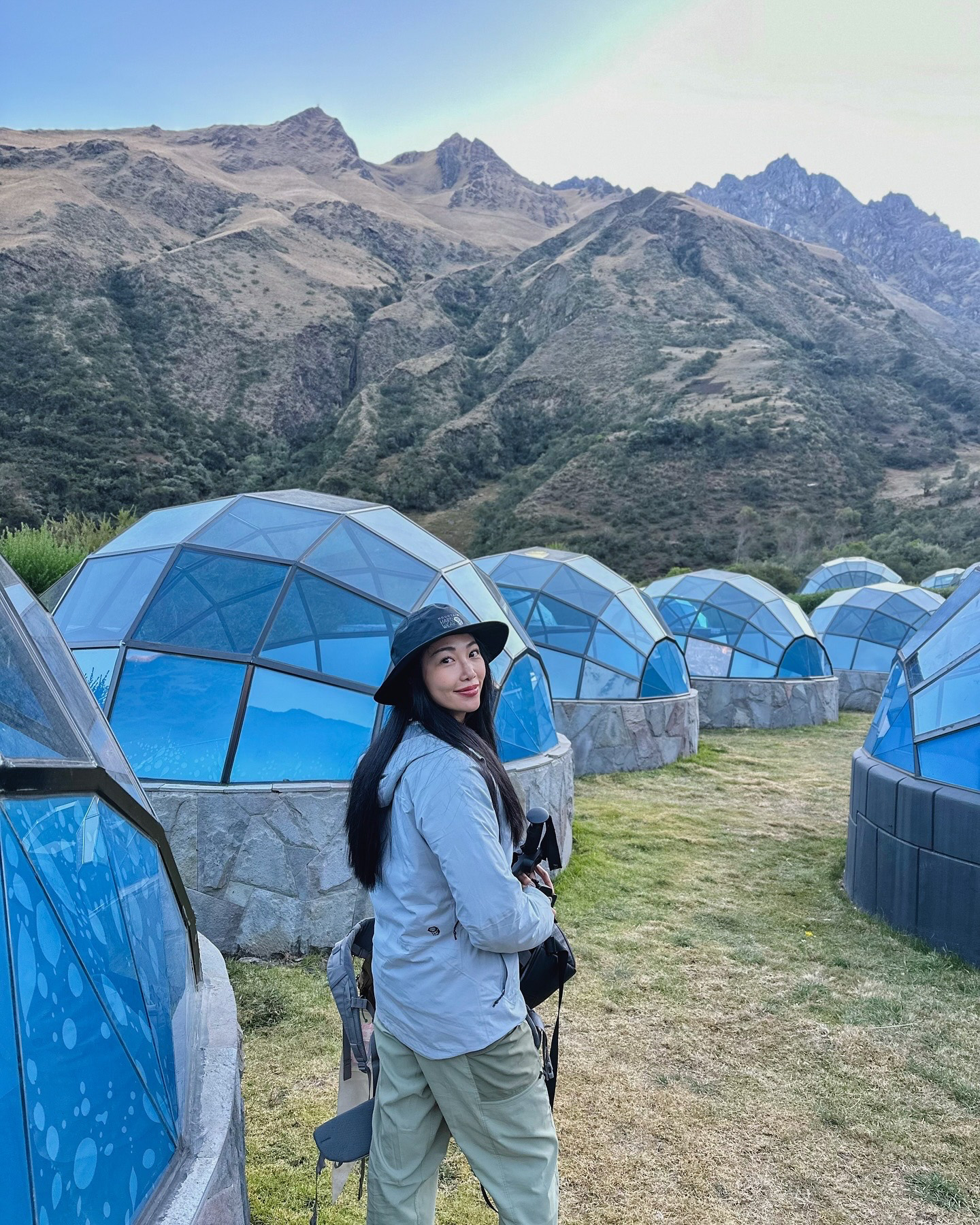 午餐過後,我們進入了雨林的邊緣地帶,這片區域也被稱為 “cloud forest 雲霧森林”。一路上,欣賞著青翠的熱帶雨林,目睹了從安第斯山脈到亞馬遜山脈之間風景的迅速變化。這一天,Crater Lake Long Sleeve Crew 發揮了重要作用。由於海拔從 4,600 公尺驟降至 2,900 公尺,氣溫從 8 度迅速上升至 20 度。在這樣劇烈的氣候變化下,這件防曬排汗衣成為我的最佳夥伴,不僅防曬且透氣,同時還能保持體溫。沿途,我沉浸在五顏六色的風景和豐富多樣的當地植物中,享受著這段溫暖的旅程,最終在夢幻的山景玻璃屋中休息。