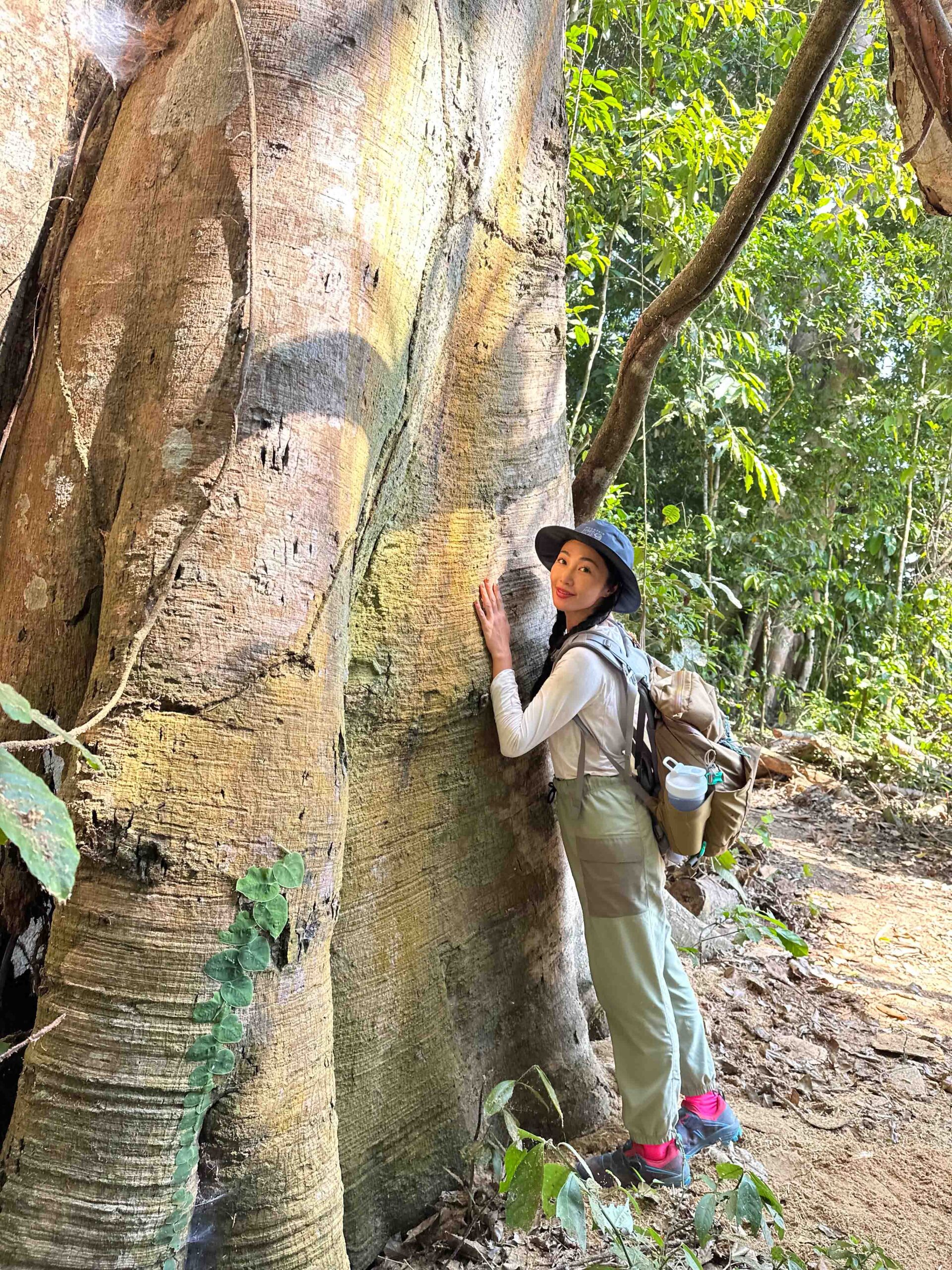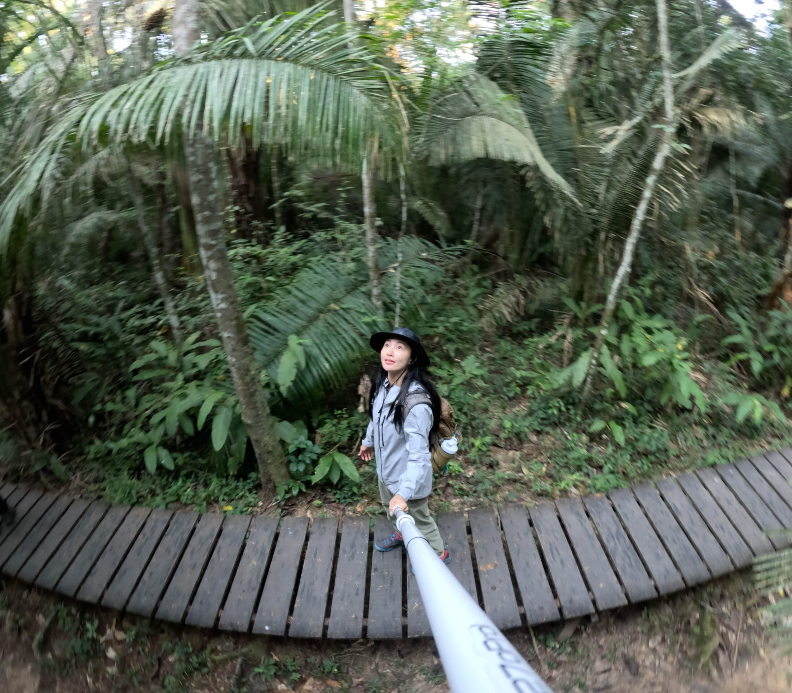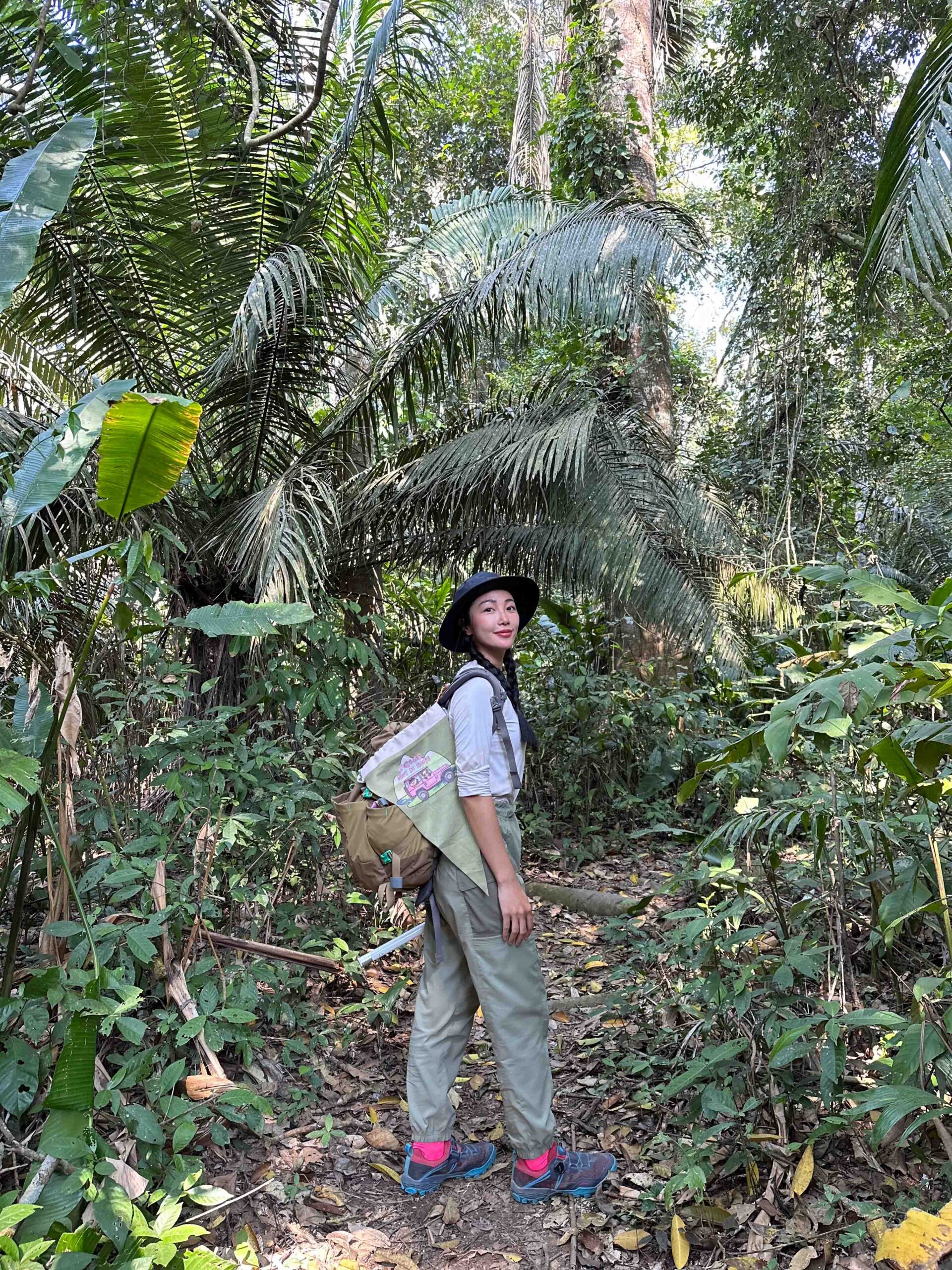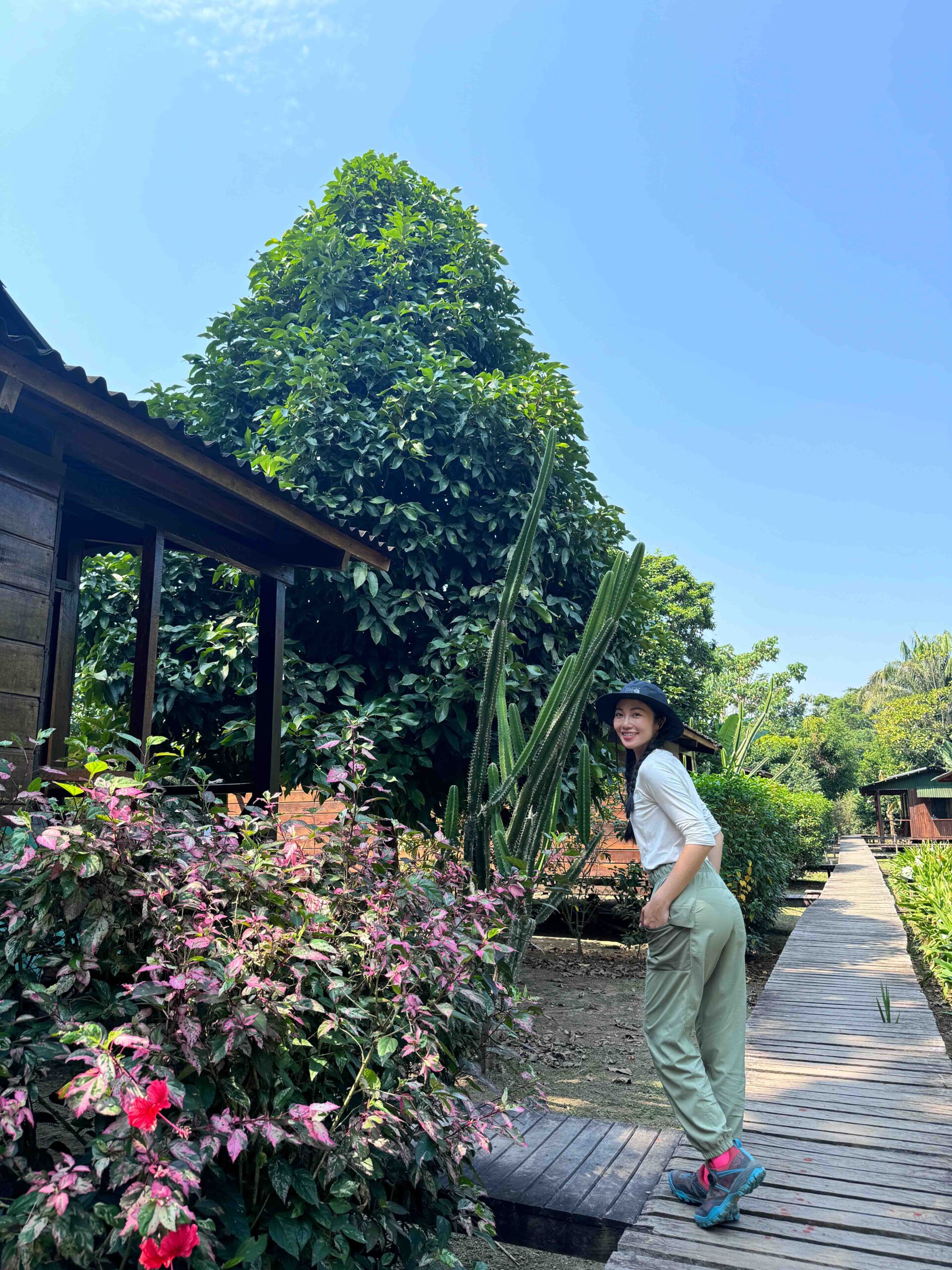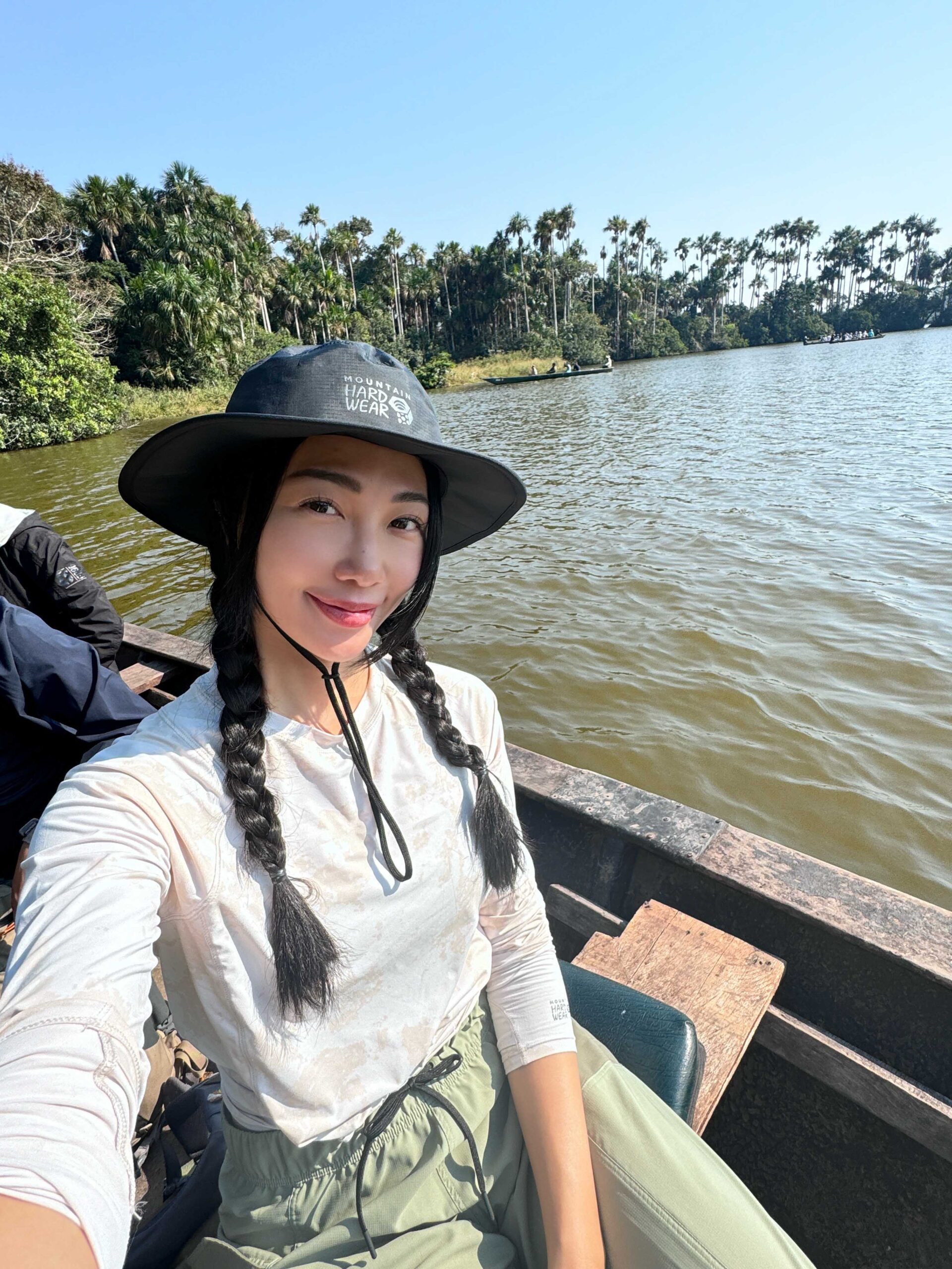 到達湖邊,我們乘坐竹筏遊湖,尋找野生動物,划著如鏡般清澈的湖水,欣賞美麗的風景,幸運地看到了許多野生猴子和鳥類。此時,太陽已經升起,湖面上沒有任何遮蔽物,幸好戴著 Threshold Rain Hat,既能遮陽又透氣,不會讓人感到悶熱。