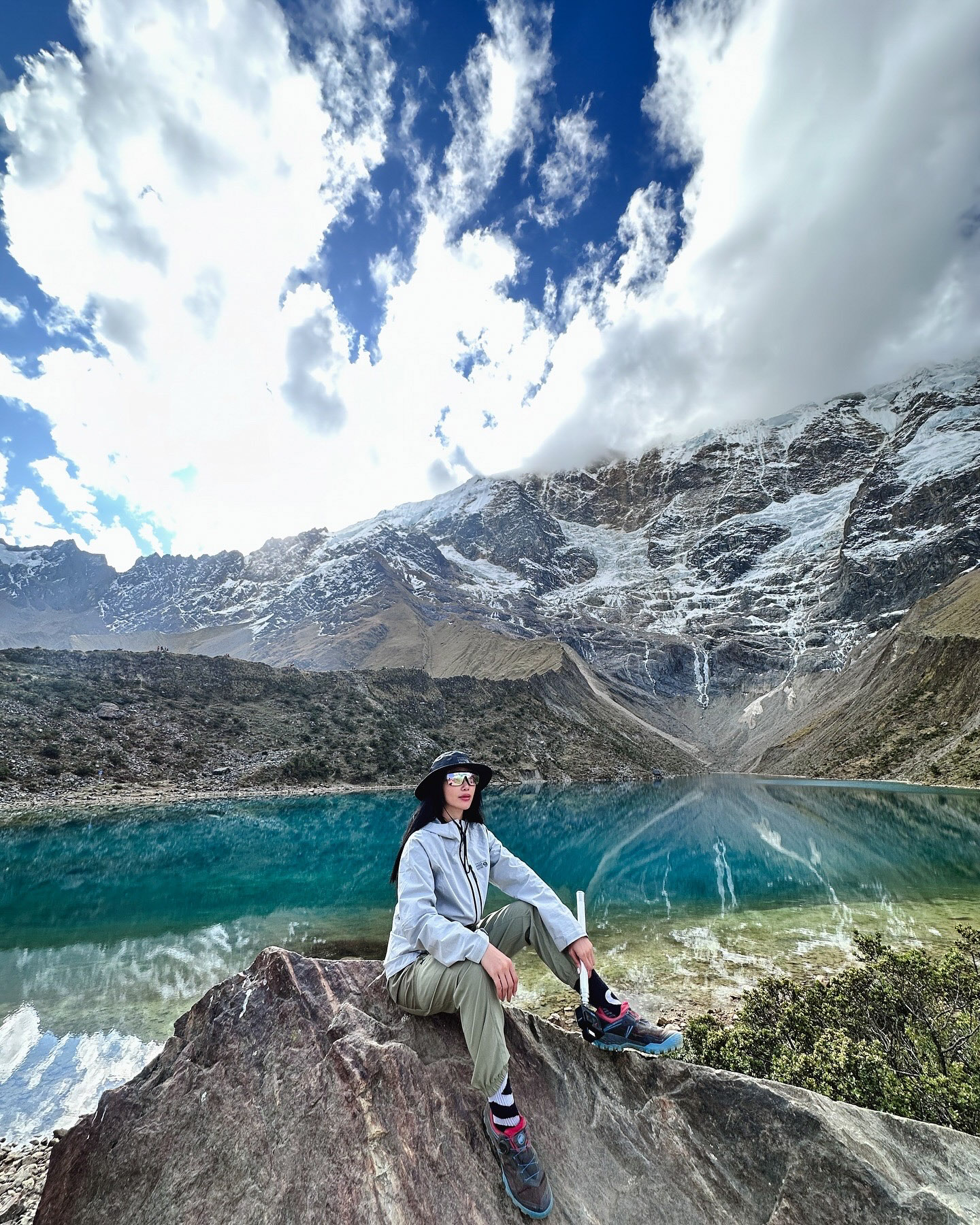 第一天攀登的 Humantay Lake 如同鑽石般閃耀,讓我想起了在喜馬拉雅山脈的 GOKYO Lake。從海拔 3,800 公尺上升到 4,200 公尺,這座天然湖泊充滿著水的靈氣與寧靜。湖泊的倒影與艷陽交相輝映,仿佛一幅動人的水墨畫,令人心醉。每年的 5-10 月是秘魯的冬季,也是乾季。在這種乾爽的氣候中,戴上 Threshold Rain Hat 和 Stretch Ozonic™ Jacket,搭配一件羊毛衣,就足以應對變化多端的天氣。