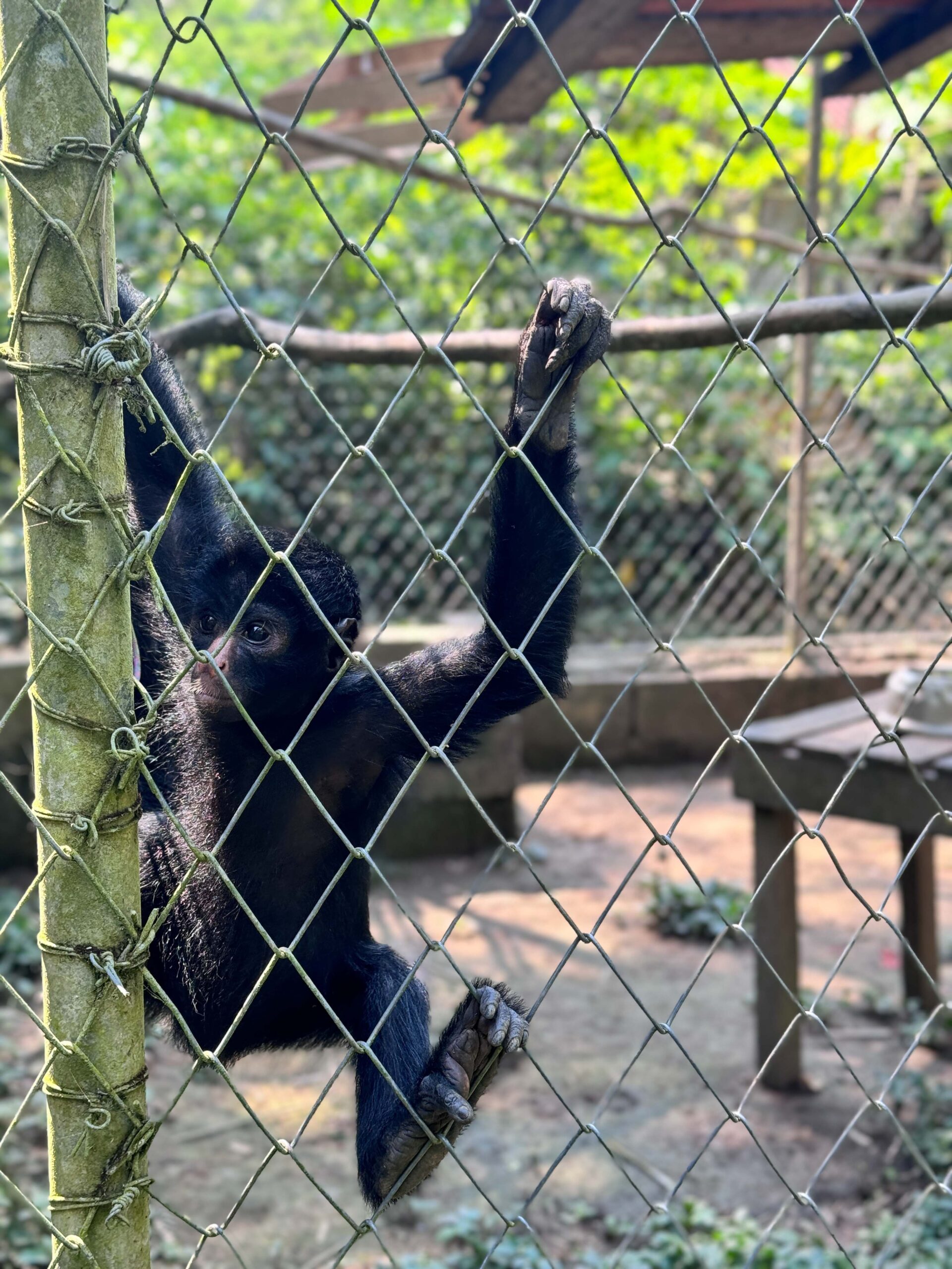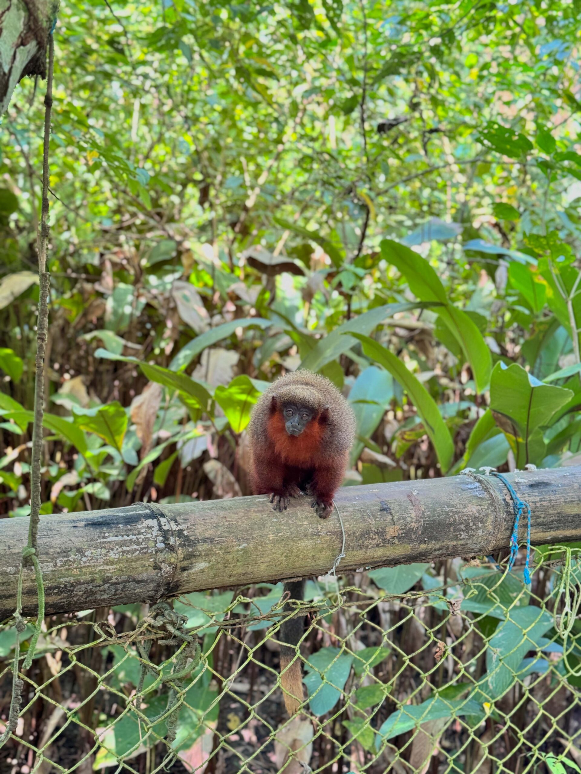 第三天,我們沿著與河流平行的森林小徑,前往 Taricaya Research Center 塔里卡亞研究中心。這裡的主要保育項目之一是野生動物救援中心。在這裡,我們遇見了許多被救援的野生動物,包括金剛鸚鵡、巨嘴鳥、蜘蛛猴、吼猴、美洲虎、河龜和安第斯眼鏡熊。這些動物在這裡康復後,將被放歸野外。