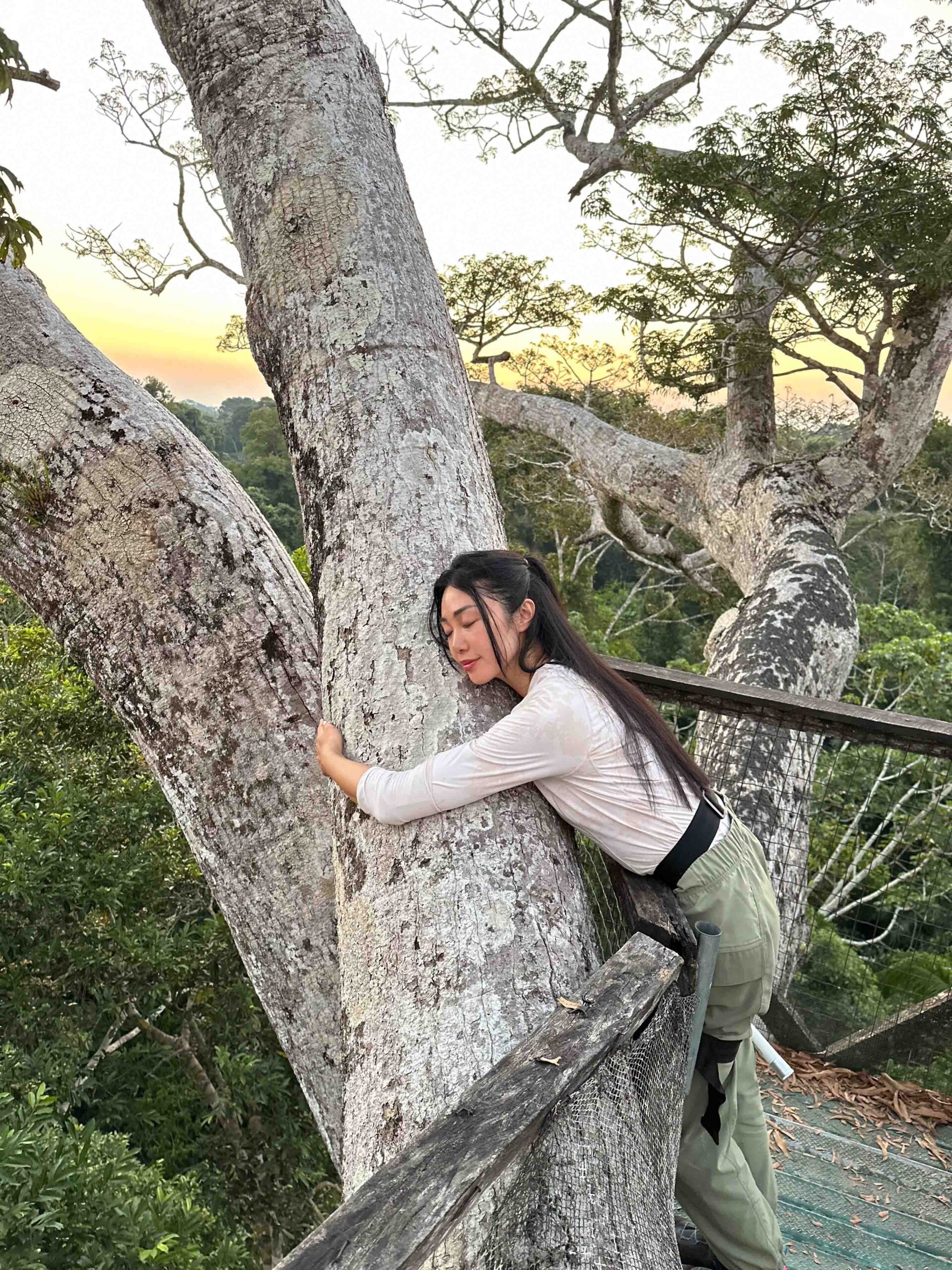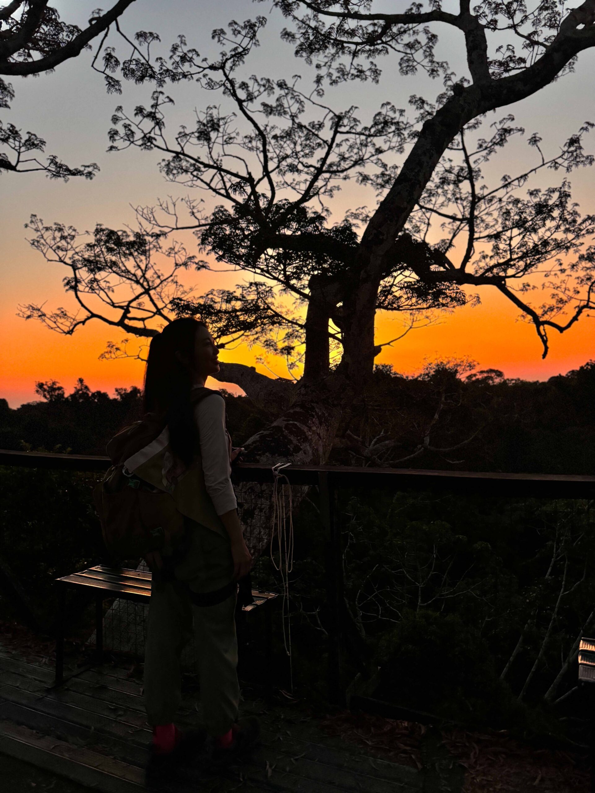 我們穿越一座 90 公尺長的吊橋,來到位於 45 公尺高古老木棉樹上的 Canopy 平台——南美洲最高的樹木平台。這對於愛探險的我來說是一個巨大的挑戰。在這裡,凝視著夕陽西下的壯麗景色,享受著一場難忘的日落體驗。