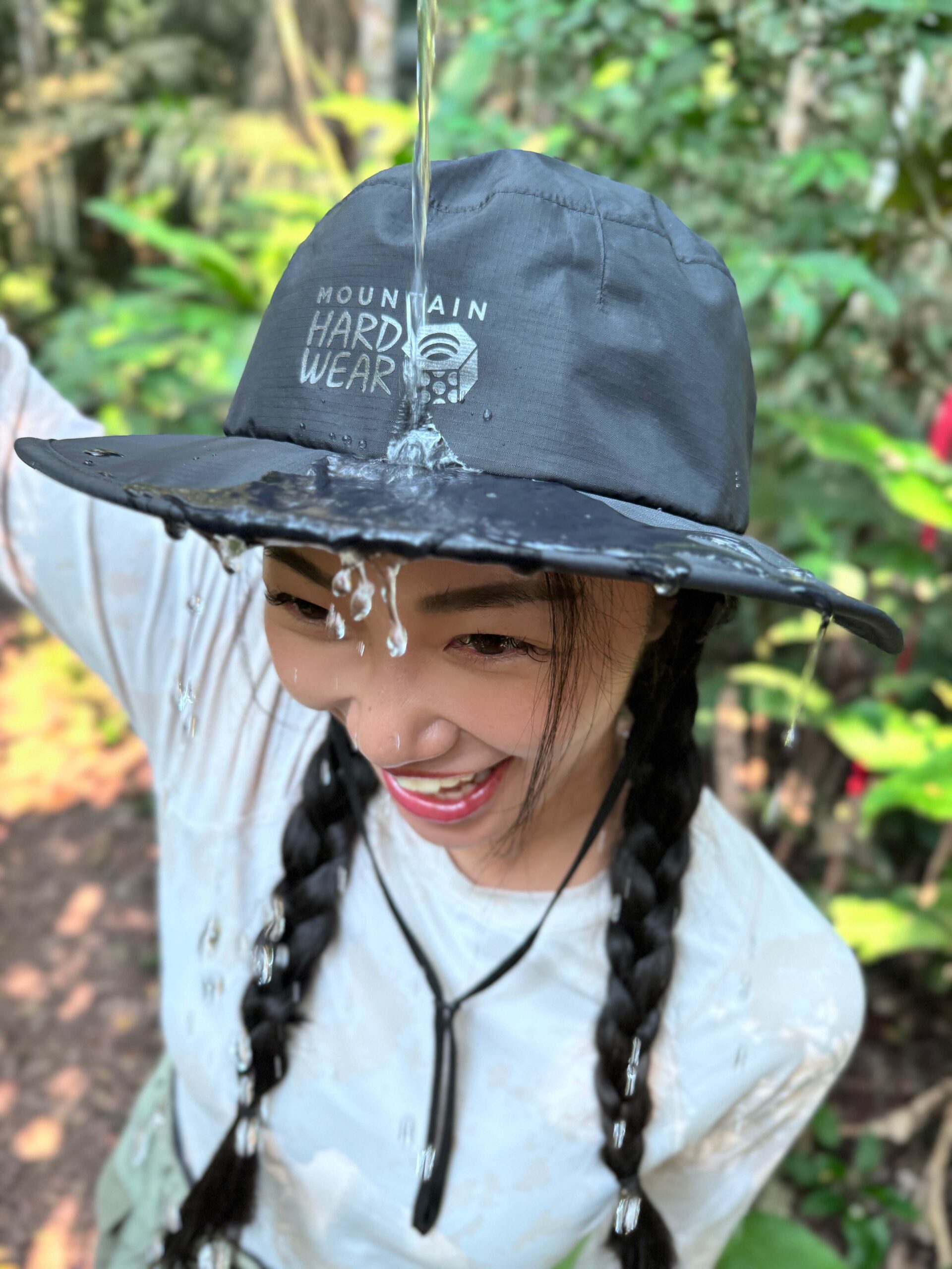 第三天,我們清晨步行穿過聖特雷莎山谷,直至 La Playa。這一天的行程比較輕鬆,我們漫步於山谷與河川之間,下坡路段多於上坡路段,沿途欣賞著郁郁蔥蔥的河流、瀑布、蘭花,並品嚐現採的水果與新鮮的小農咖啡。Threshold Rain Hat 寬大的帽沿與輕盈透氣的材質,讓我在健行過程中免受紫外線的侵襲。傍晚,我們前往 Cocalmayo 的溫泉,享受一場舒緩的泡湯體驗,在這段艱苦的健行旅途中,能夠在天然溫泉中放鬆身心,無疑是一大享受。