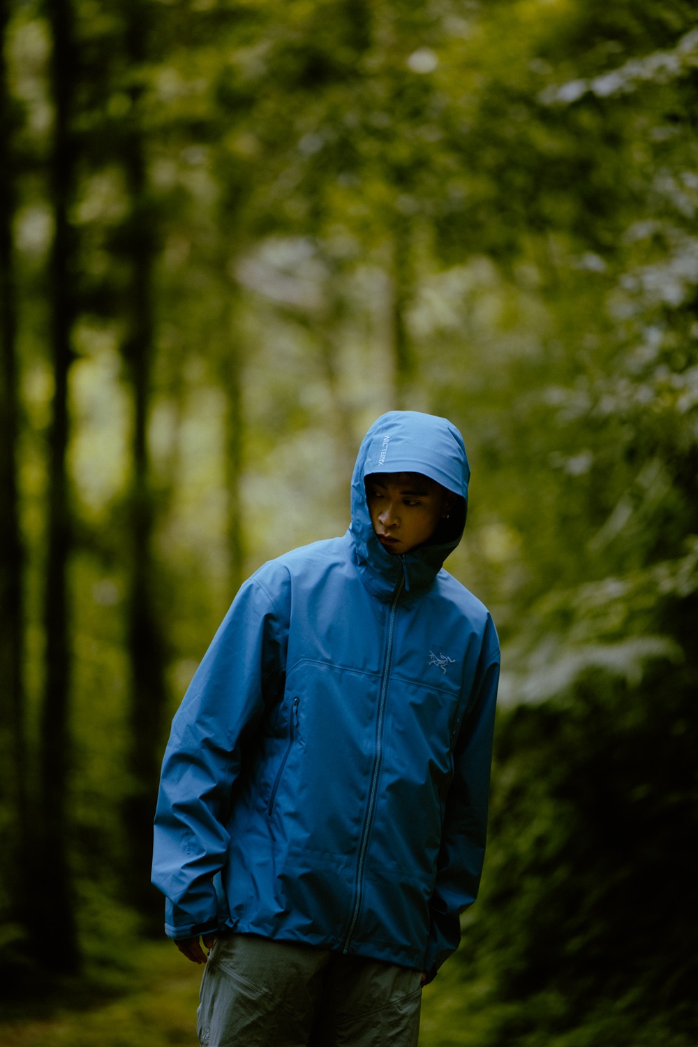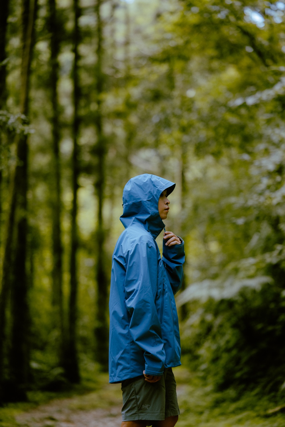 除了穿著防水的登山鞋,上身也穿著 Arc’teryx Beta 防水外套,對於挑選服飾,LINION 首要重視防水機能,尤其住在淡水,夏天會以快乾材質的衣物為主,冬天一定會穿防水外套。