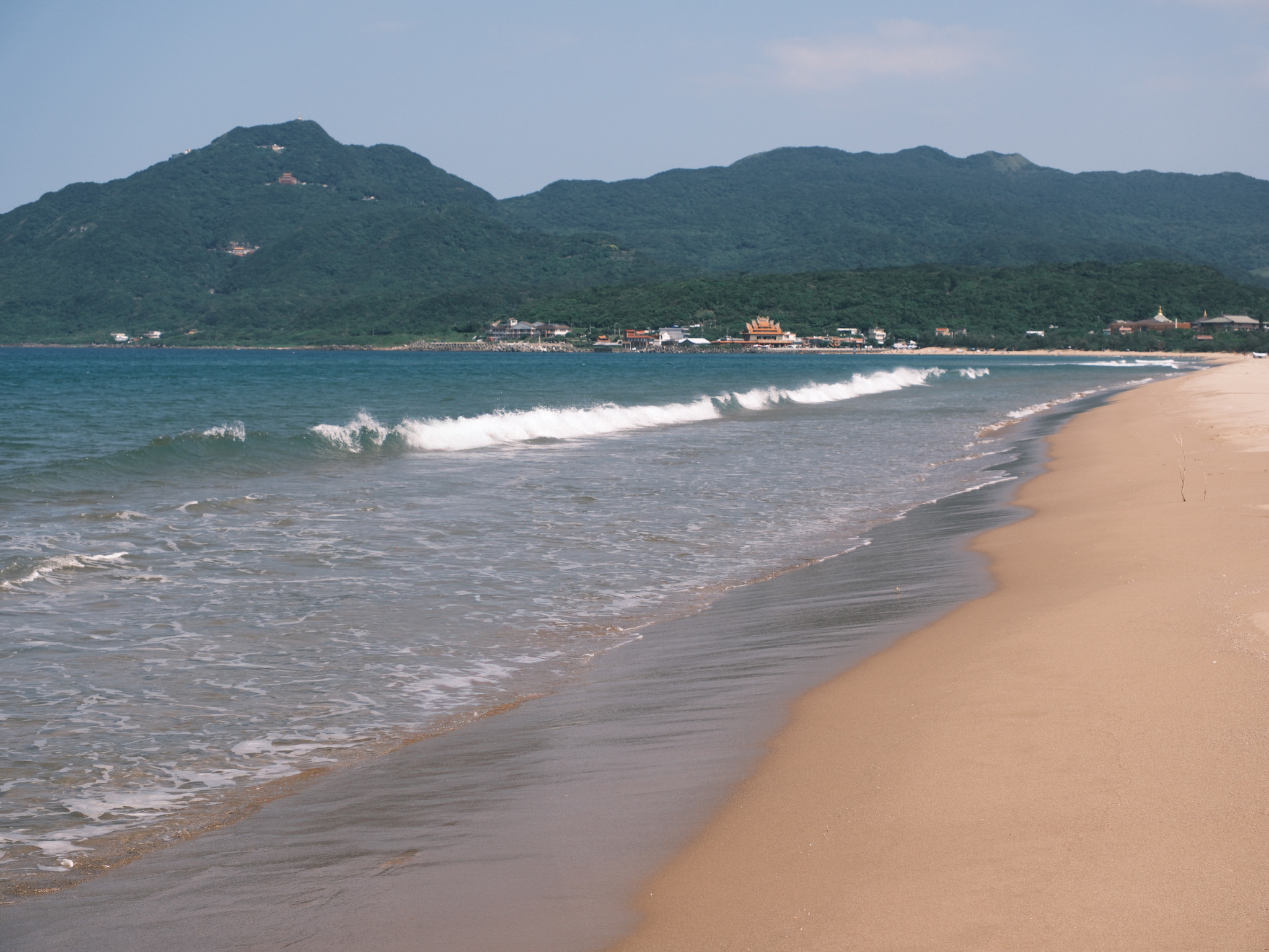 午後,驅車前往龍門沙灘,這個沙灘與福隆海水浴場的海岸線連結,但遊客較少,能清閒地享受日光浴、踏浪,也有許多衝浪玩家到訪,是個能遠離人群又擁有同樣金黃沙灘,東北角難得的夏日消暑沙灘,順帶一提,小資族從龍門沙灘進入,就可省下每人 230 元的福隆海水浴場門票費用喔!