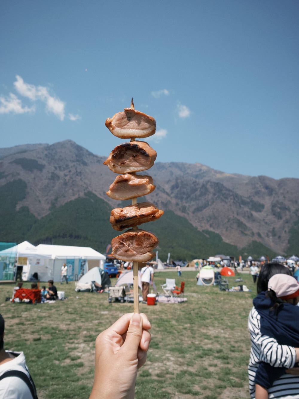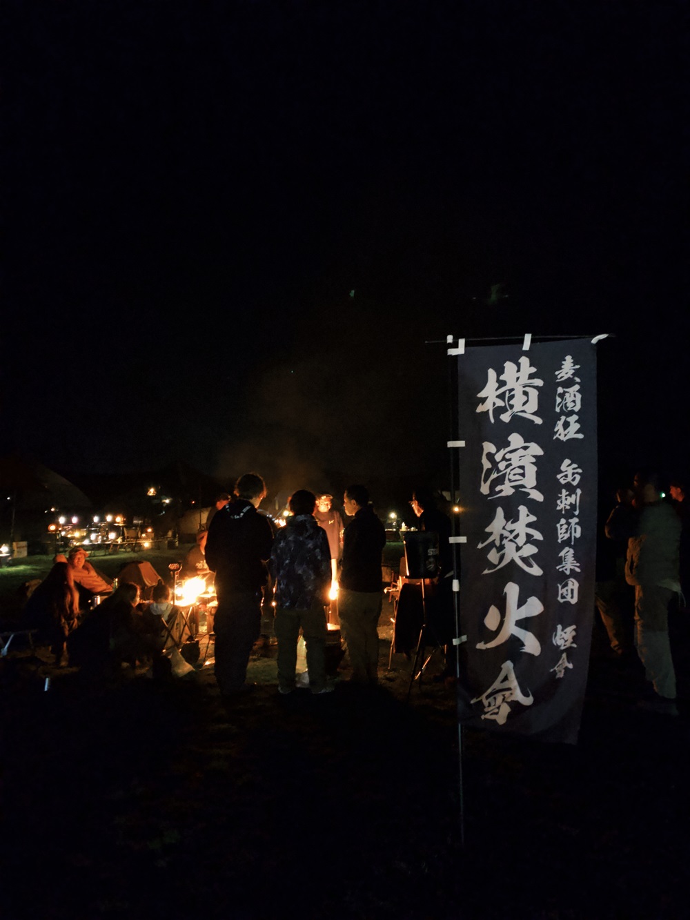 經過日本當地社團「橫濱焚火會」時被熱情邀約一起同樂,被招待好吃的烤肉,以及邀請入座,在冷冷的夜晚一起暖腳,一起用著簡單的英文交流,這大概就是露營的魔力!