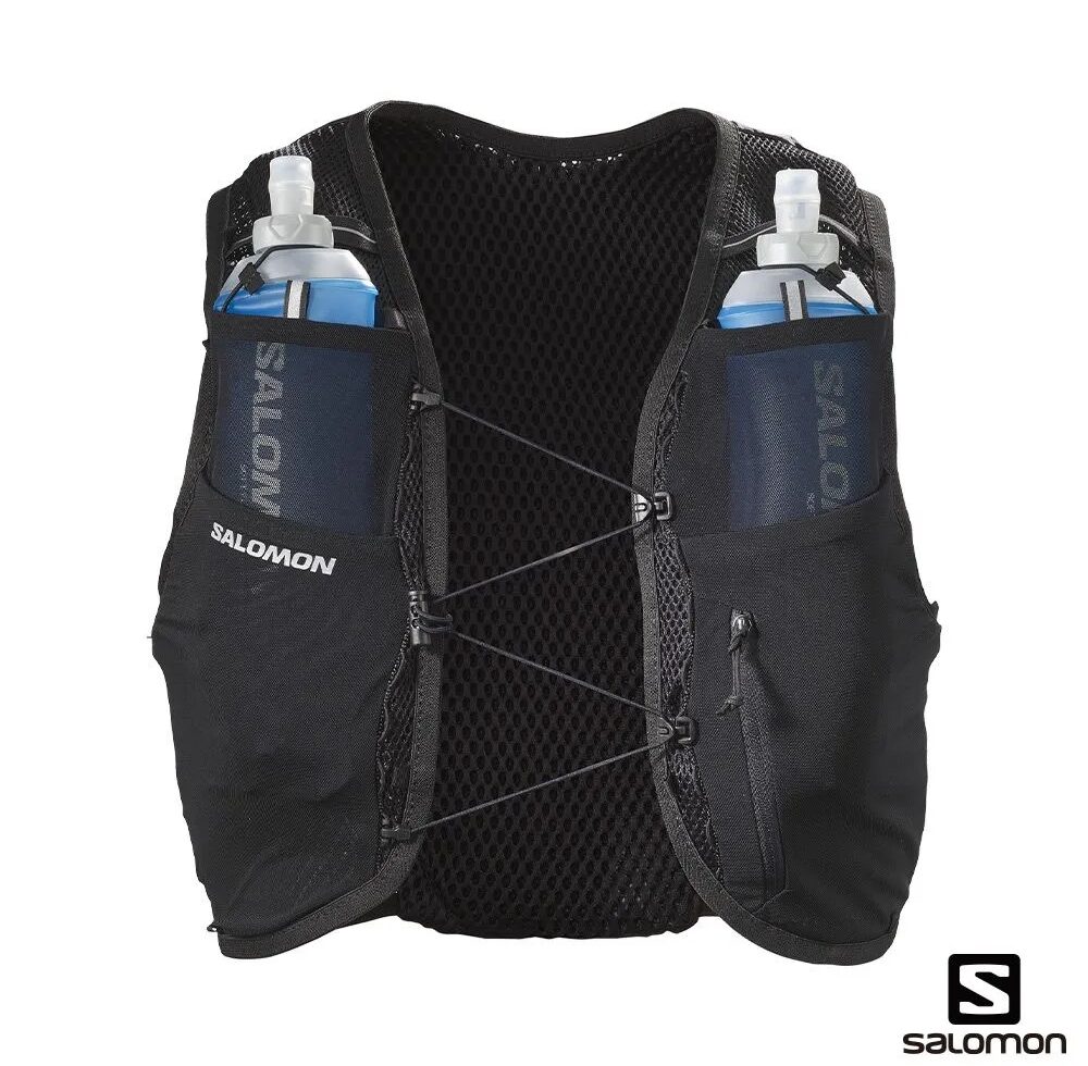 這款高性能的黑色越野背心配有絕佳的舒適度,適用於各種賽事、地形和天候狀況。有防水口袋設計,整體簡約,外觀有流線感,並附有2個水壺,並經過反覆測試,達到最高的穩定性。