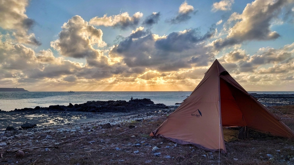 但焦點切回到他自己身上,他卻曾面臨瀕死關頭。那是發生在他剛開始野營的時候,蔡騰達回憶道:「剛開始野營對裝備、天氣都不是很熟悉,那時候一心只想著要去釣魚,有些地方必須過夜,所以野營就成了過夜的方式。有一次跟幾個朋友去綠島外礁磯釣,天氣很熱,我們看到遠方有一團烏雲接近,預判待會就要下大雨了。我們第一個想法是,趕快脫光衣服,拿出肥皂,準備暢快地洗個澡。想說反正很熱,下個雨反而比較涼快。但誰知道,那團烏雲帶來的雨勢很大,而且還颳強風,沒過幾分鐘,我們都冷到受不了。」