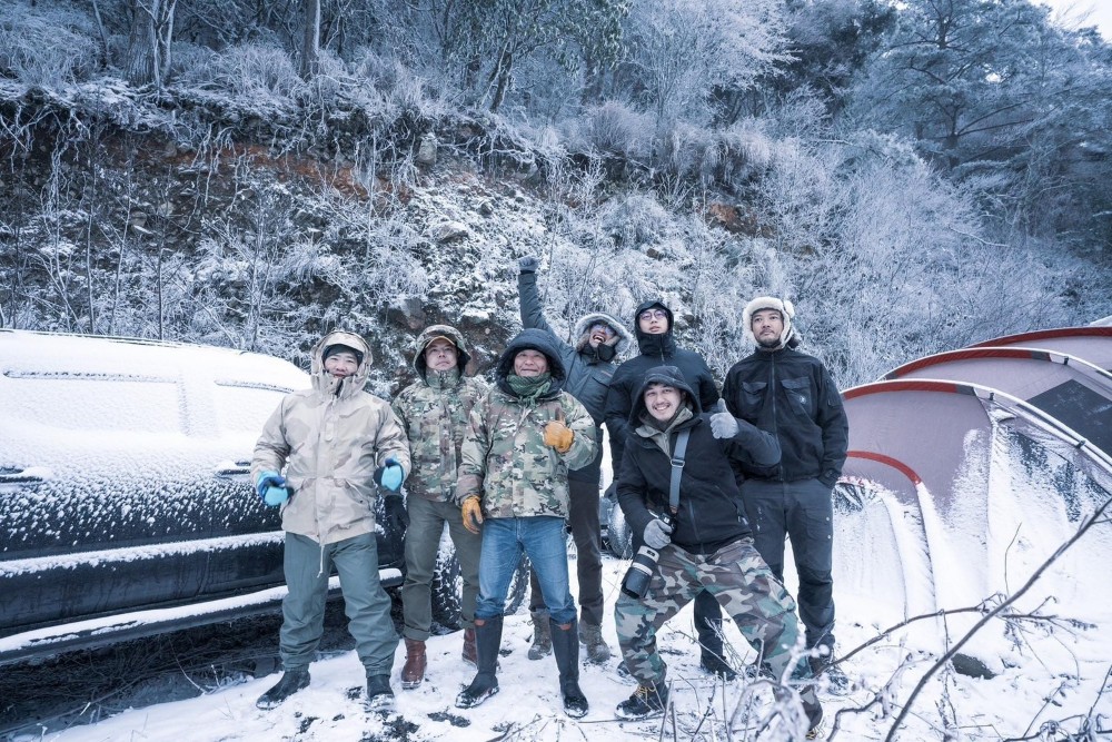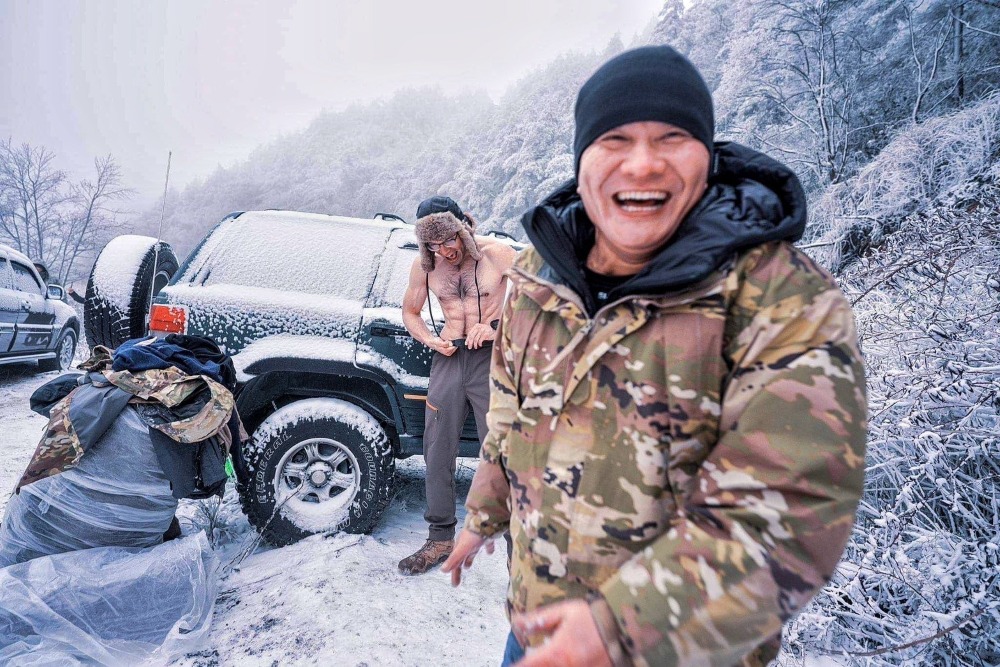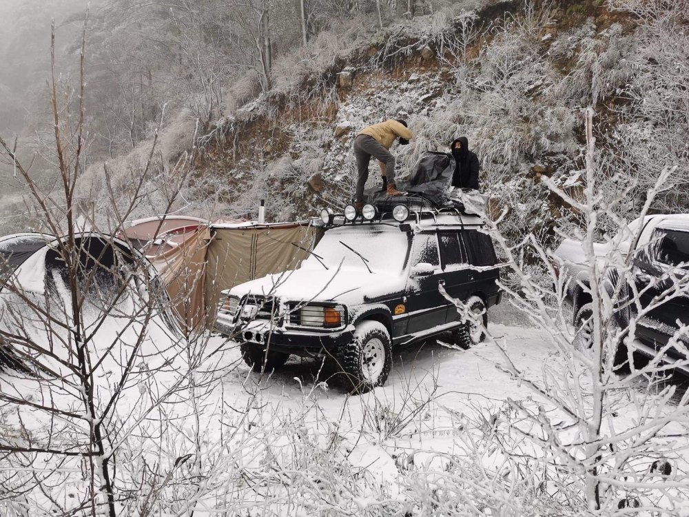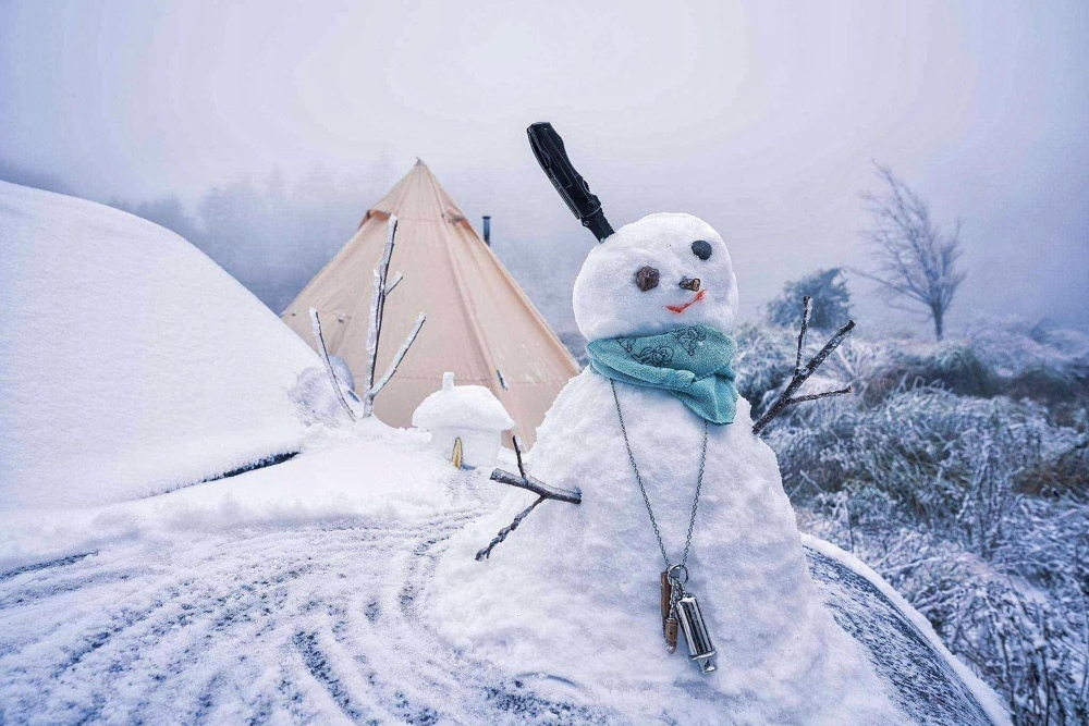 講到雪地野營,蔡騰達的野營聊天系統像是被全部打開一樣,開始淘淘不絕:「要追雪不是簡單的事情,得要先查好天氣資訊。而且台灣要達到下雪的條件,表示有寒流或是鋒面通過,那陣子天氣都不會太好,往往是淒風苦雨的狀態。所以得要耐得住濕冷的天氣,在營地等待降雪時機來臨。每次追雪,大家晚上都睡不著,深怕錯過下雪的時刻。而只要一下雪,大家都會不顧低溫,衝出帳篷或是車子,又跳又叫的。隔天看到滿滿的霧淞,車子被白雪覆蓋,那種夢幻的景象,更是療癒。」