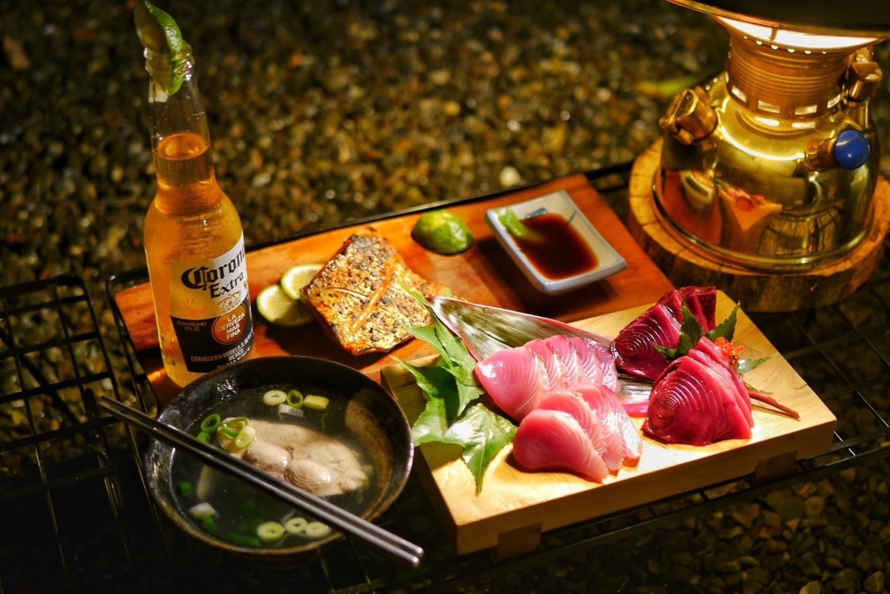 他與友人們還會依據不同時節規劃不同野營活動,像是最基本的春天賞櫻、秋天賞楓,另外還有更融入大自然的超 chill 行程。蔡騰達語氣興奮地說:「雖然夏天快要結束了,但我們上星期才去溪邊野營,還抓香魚烤來吃,超讚的。冬天快到了,我們一定會開車去泡野溪溫泉。有機會的話,還會追雪。我跟你說,在雪地露營那種感覺真的很夢幻,你會看到一群男人像小孩一樣,興奮的打雪仗、丟雪球。」